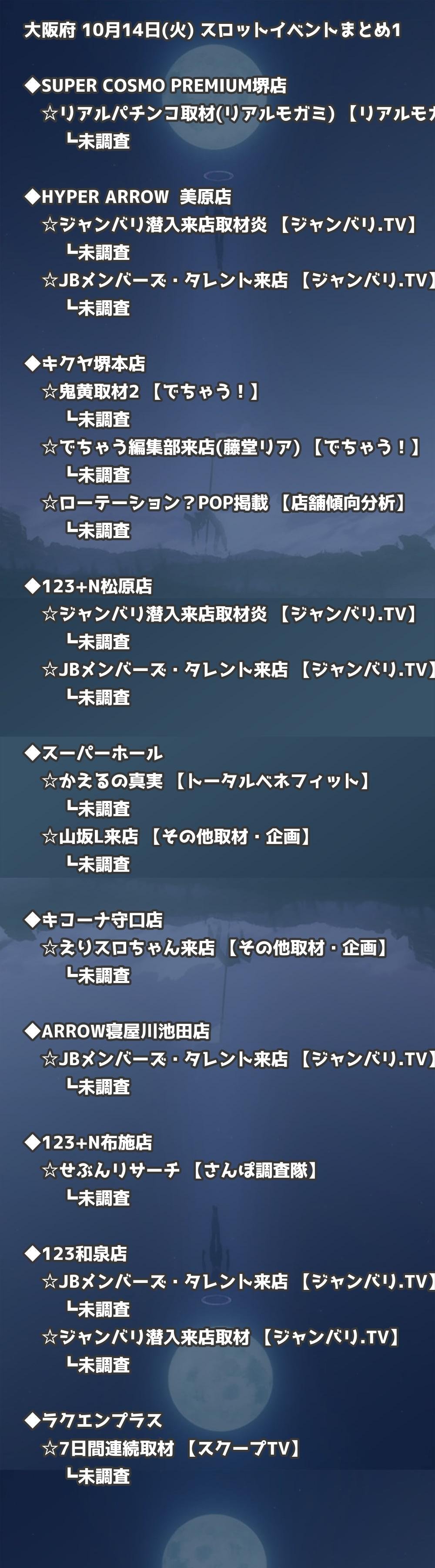 📊 大阪府 10月14日(火) 勝てるパチンコ・スロット取材店舗一覧|おすすめ順