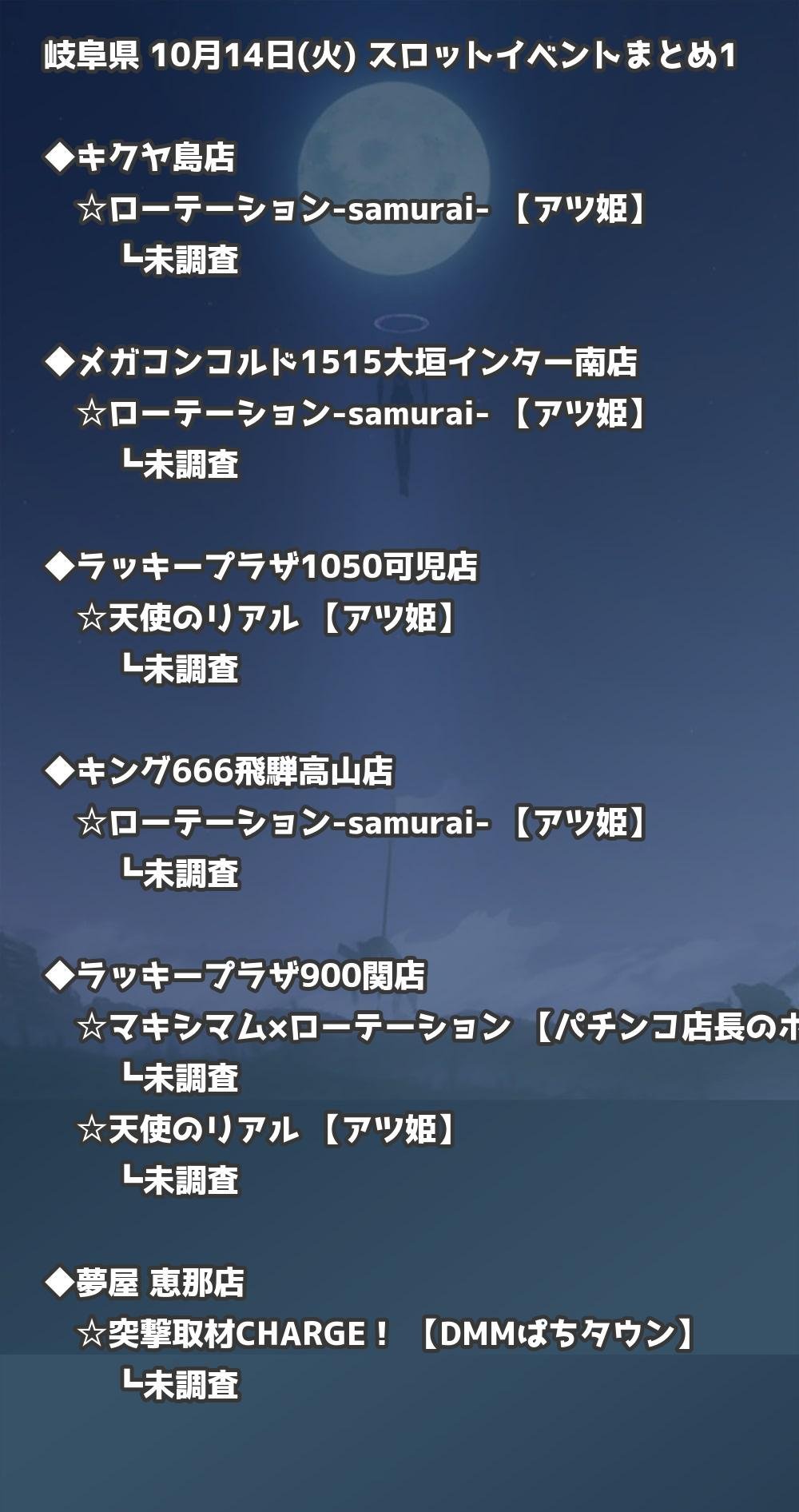 📊 岐阜県 10月14日(火) 勝てるパチンコ・スロット取材店舗一覧|おすすめ順