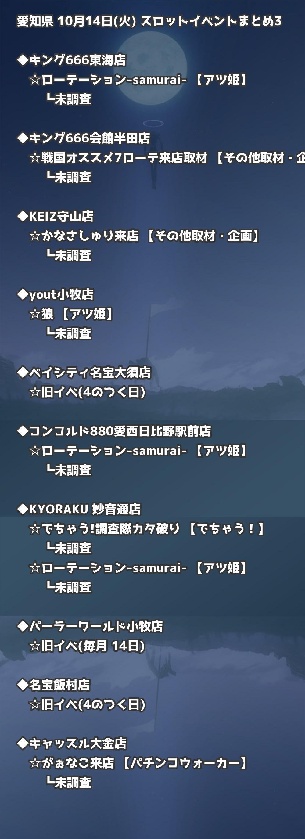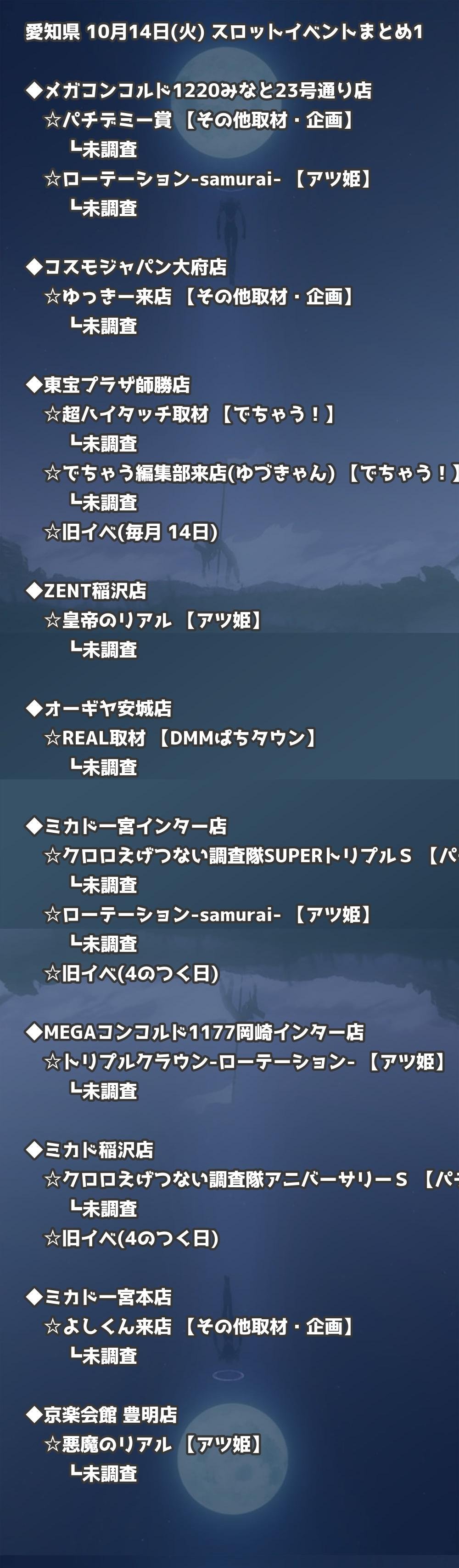 📊 愛知県 10月14日(火) 勝てるパチンコ・スロット取材店舗一覧|おすすめ順