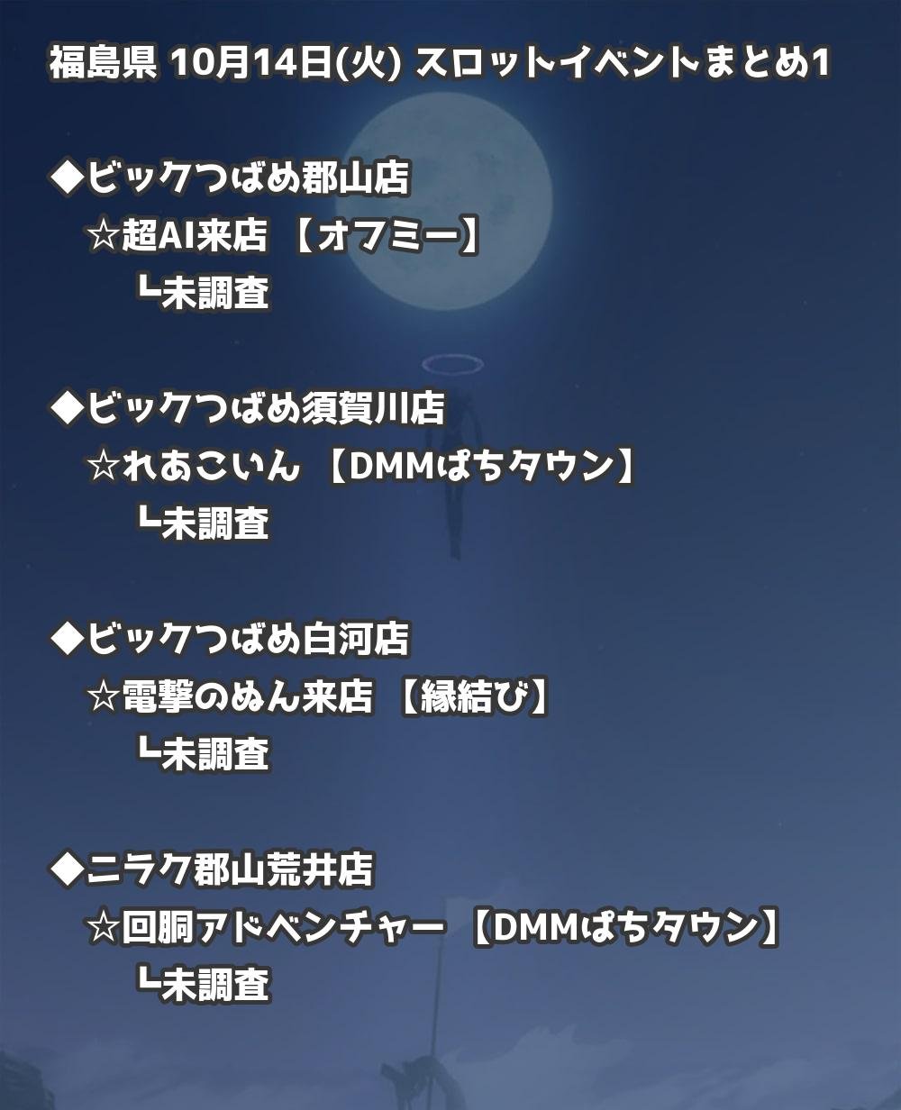 【福島県】10月14日(火) パチンコホールイベント取材まとめ記事です。