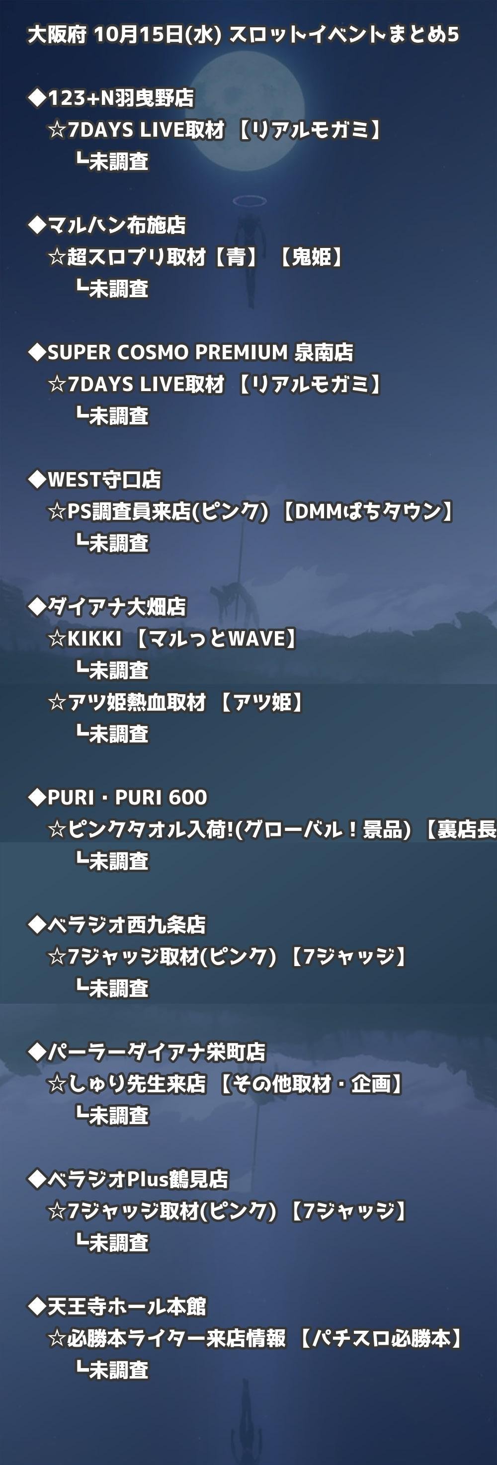 📊 大阪府 10月15日(水) 勝てるパチンコ・スロット取材店舗一覧|おすすめ順