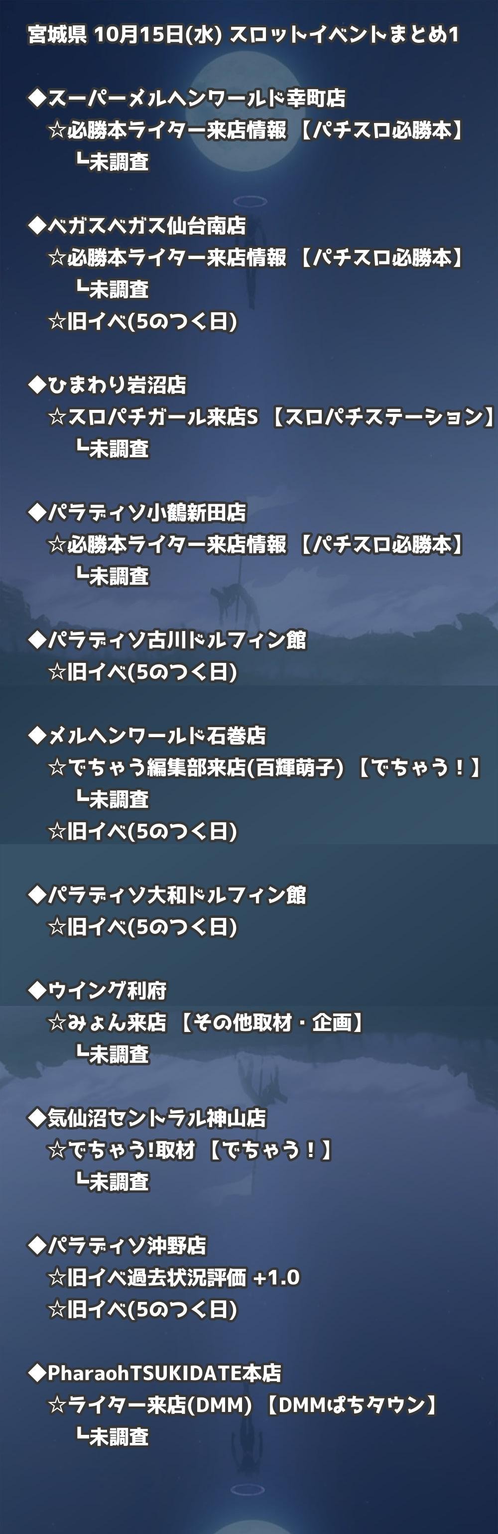 【宮城県】10月15日(水) パチンコホールイベント取材まとめ記事です。