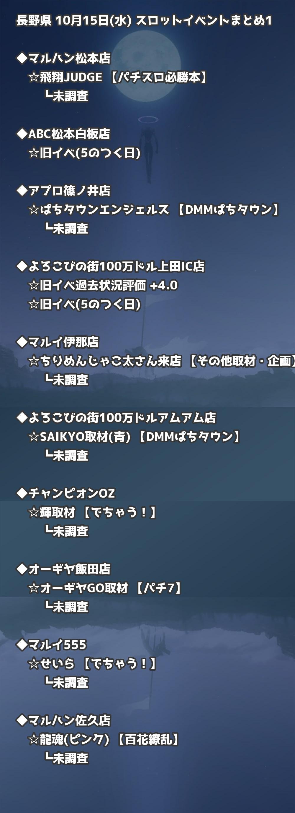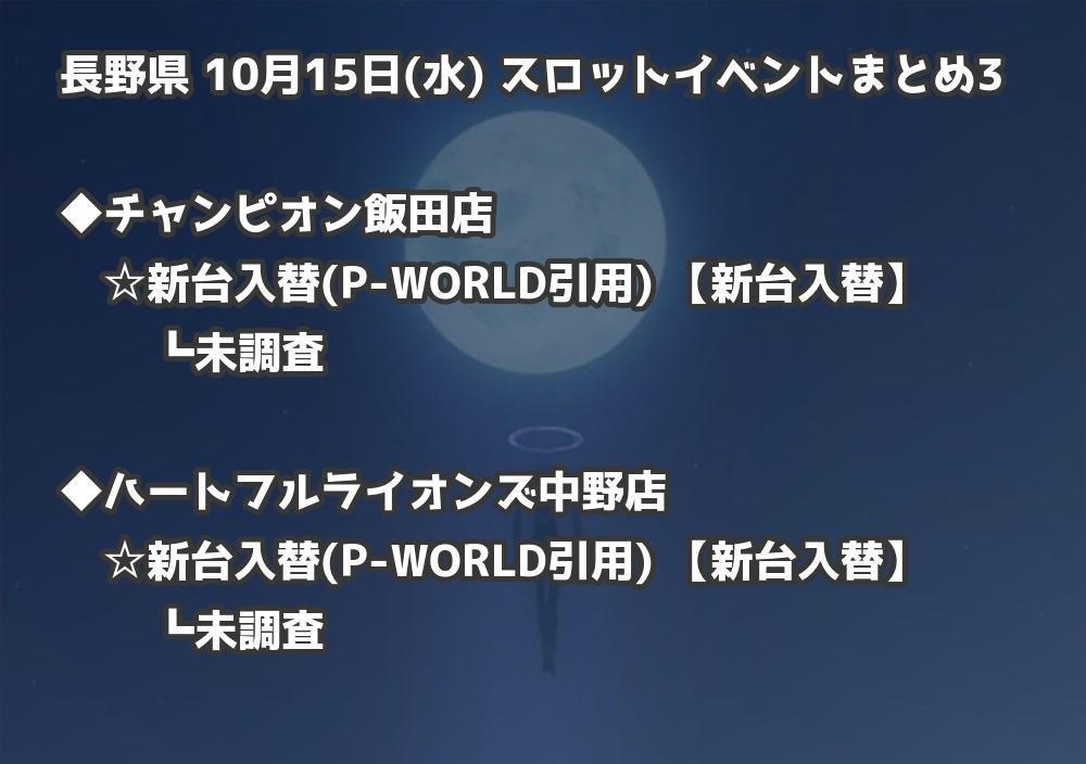 【長野県】10月15日(水) パチンコホールイベント取材まとめ記事です。