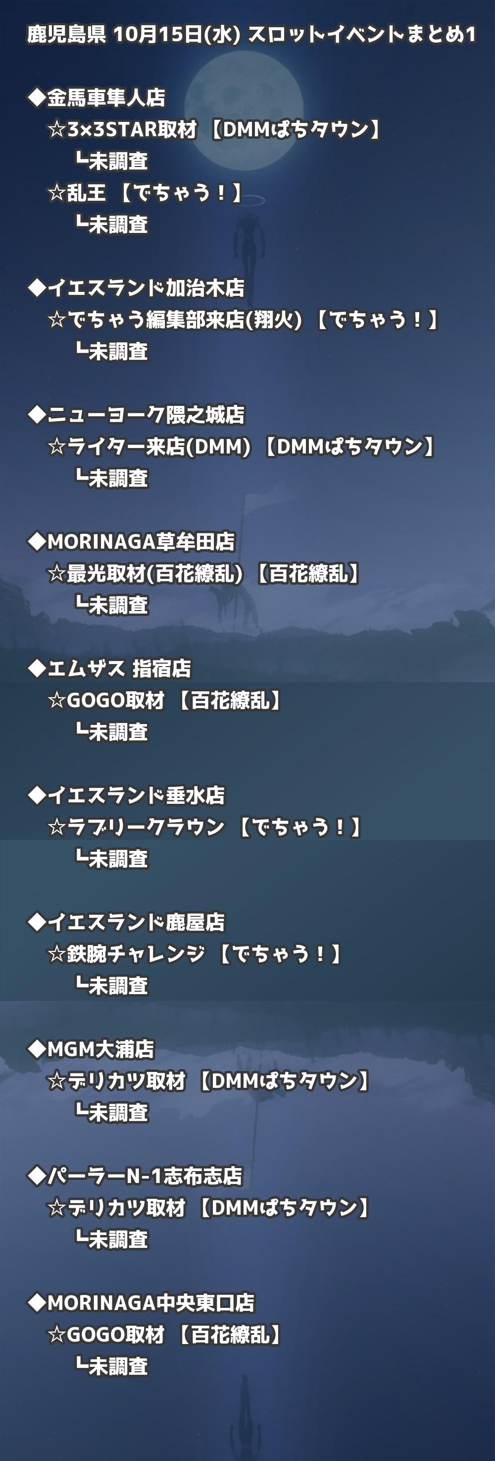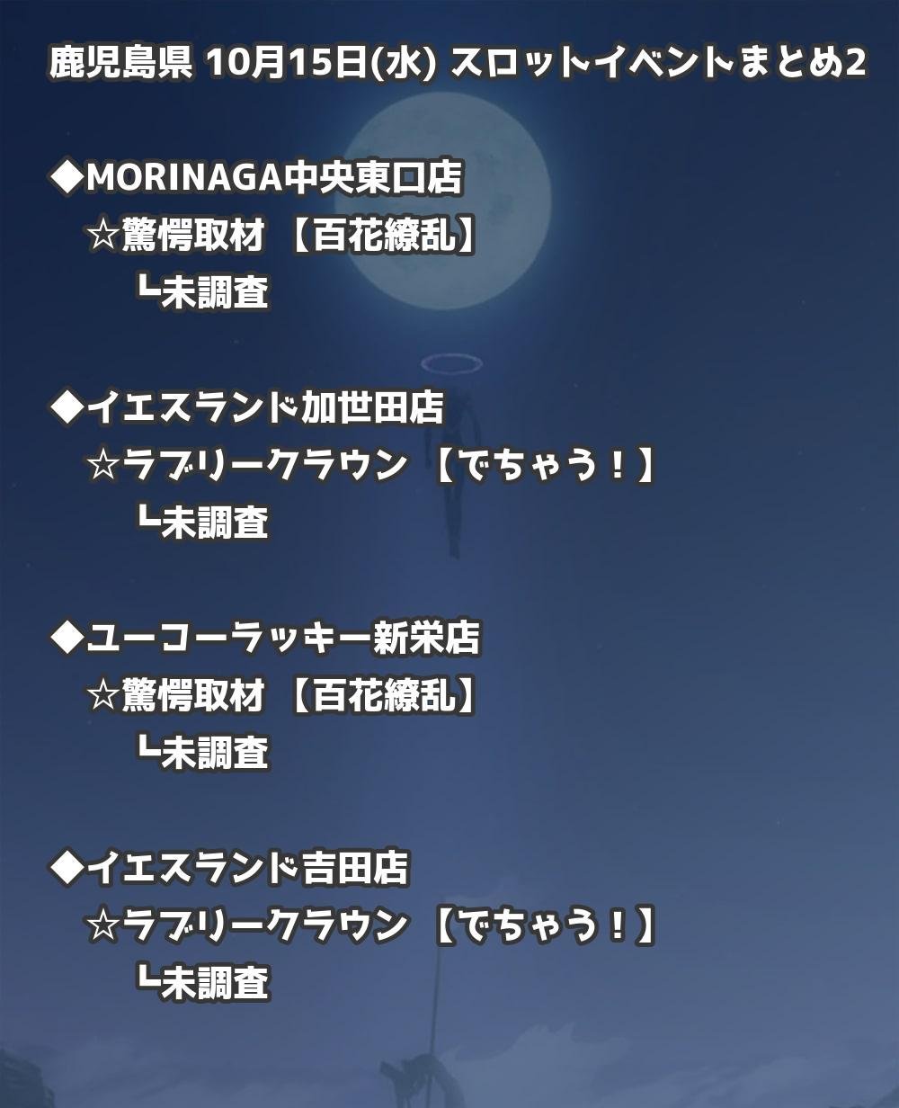 【鹿児島県】10月15日(水) パチンコホールイベント取材まとめ記事です。