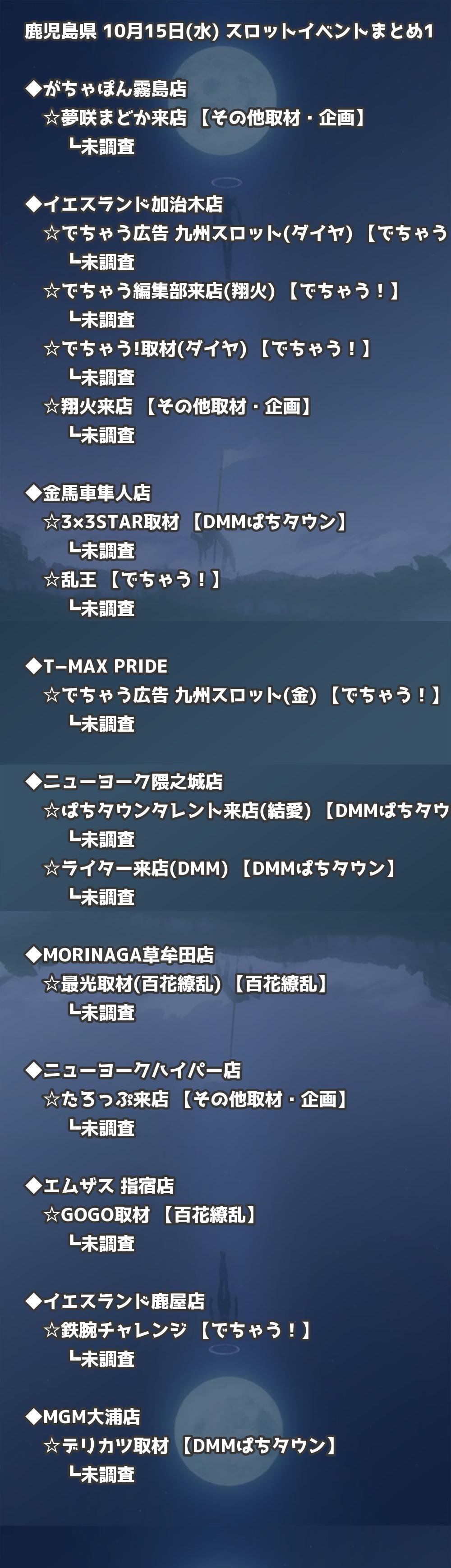 📊 鹿児島県 10月15日(水) 勝てるパチンコ・スロット取材店舗一覧|おすすめ順