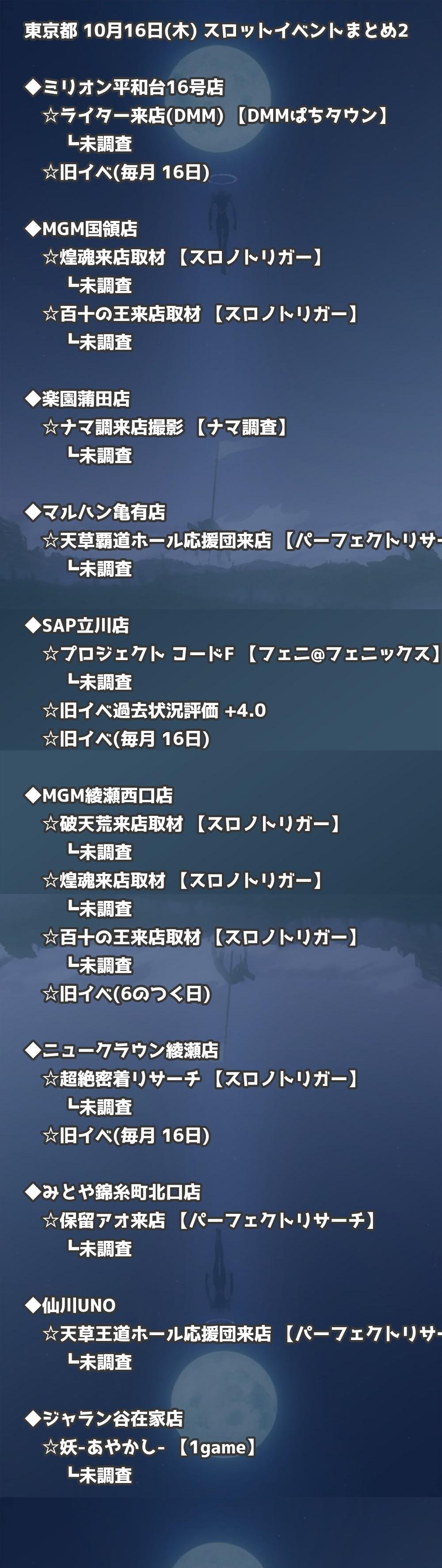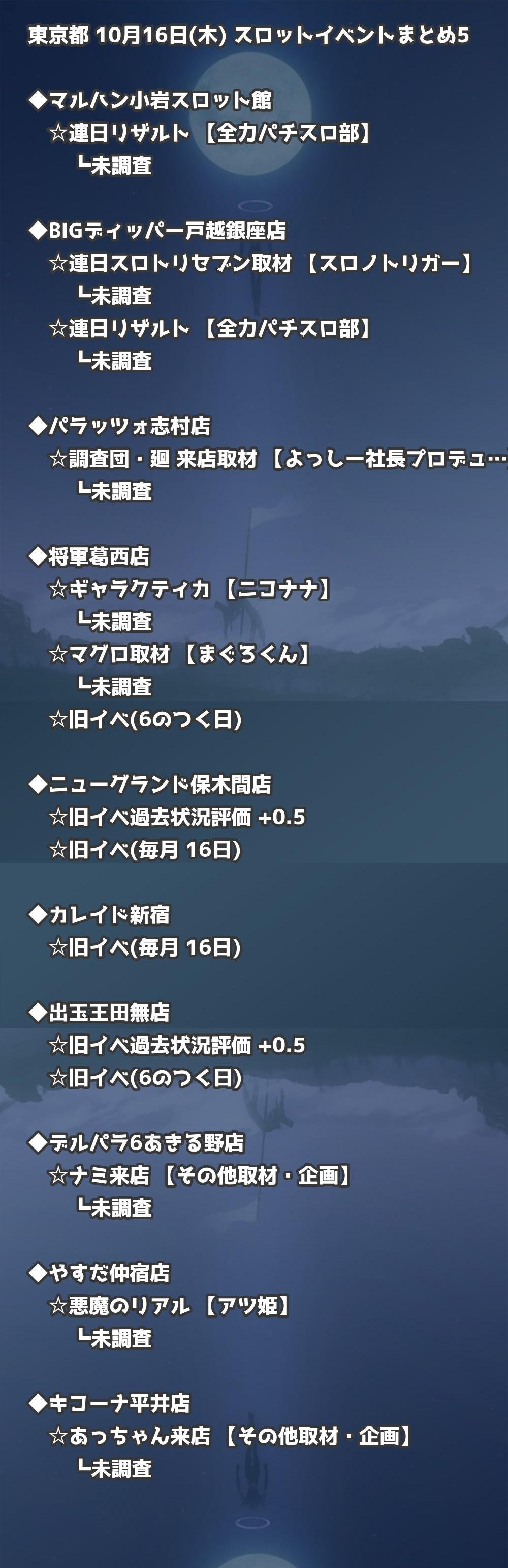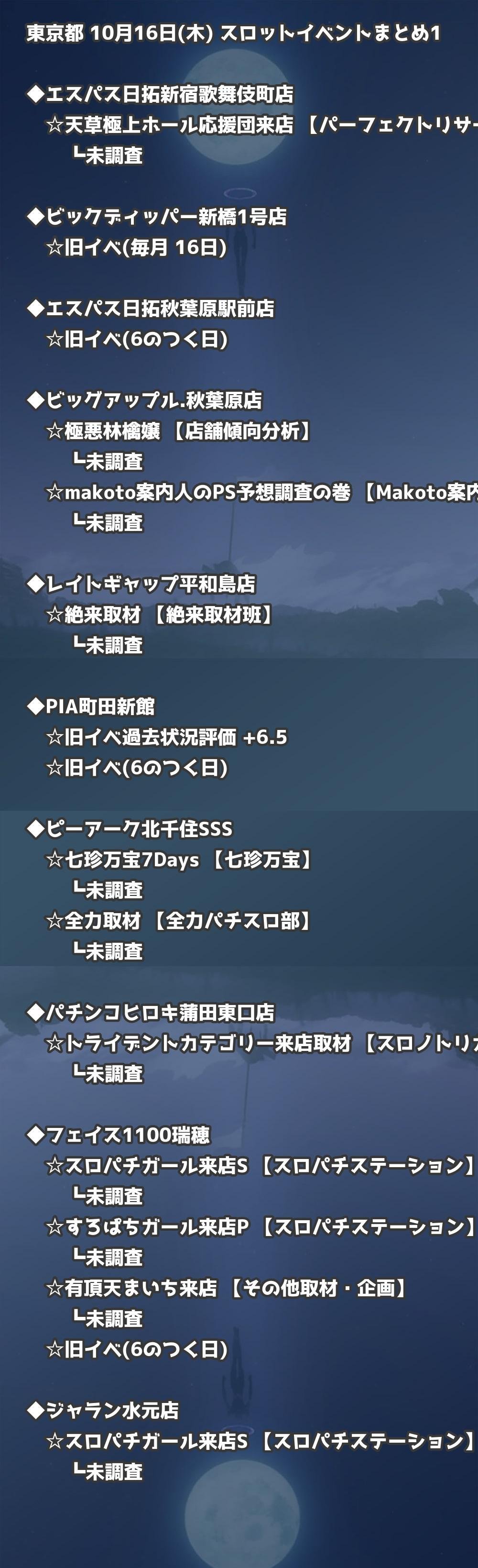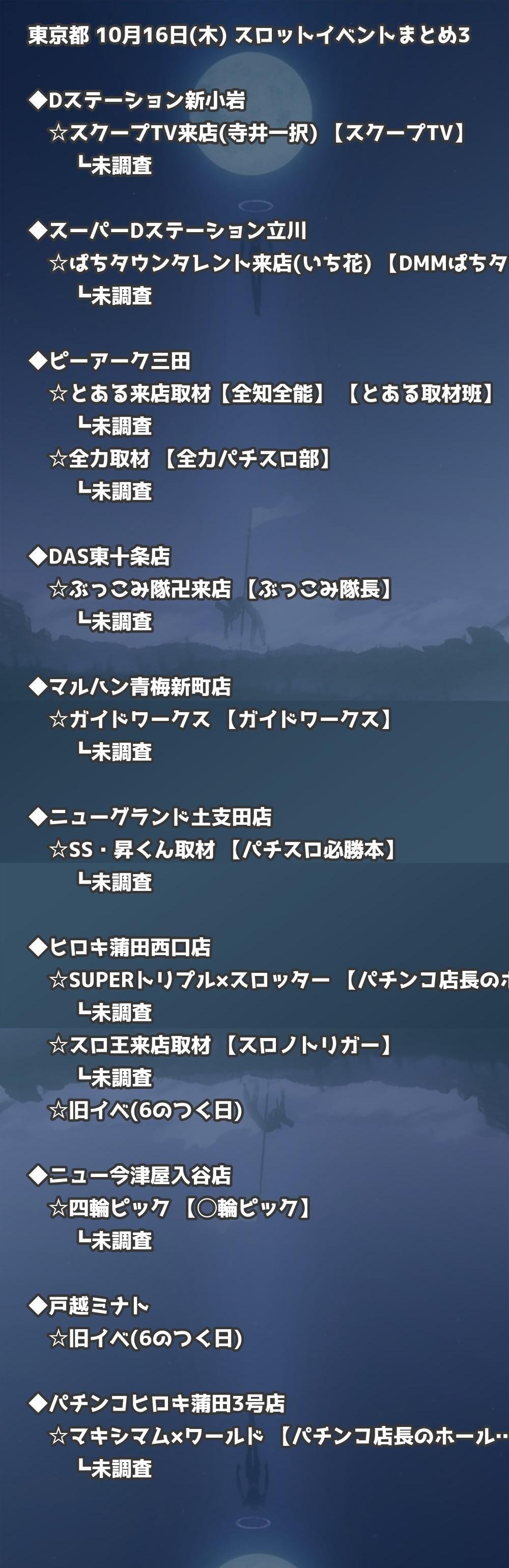 📊 東京都 10月16日(木) 勝てるパチンコ・スロット取材店舗一覧|おすすめ順