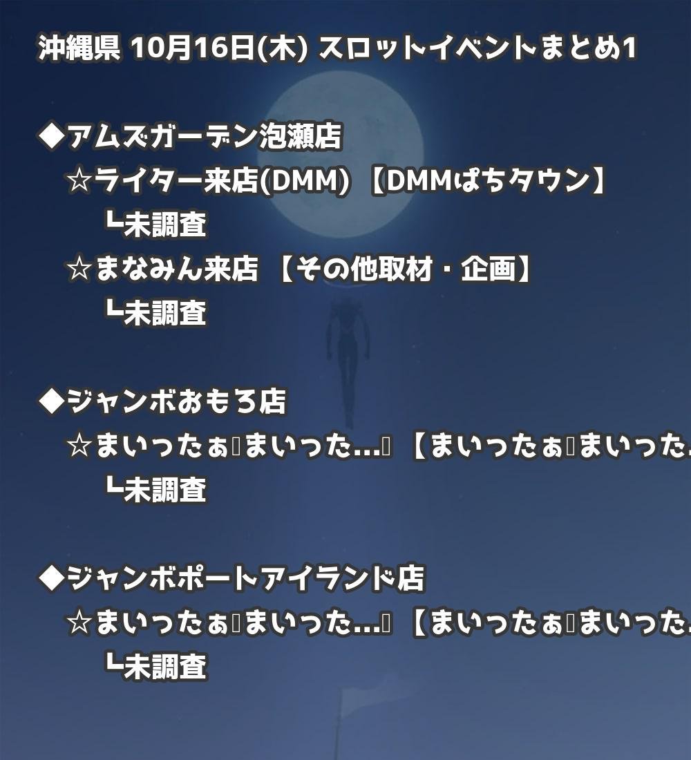 【沖縄県】10月16日(木) パチンコホールイベント取材まとめ記事です。