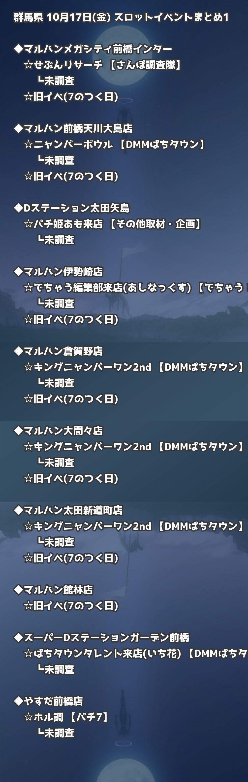 【群馬県】10月17日(金) パチンコホールイベント取材まとめ記事です。