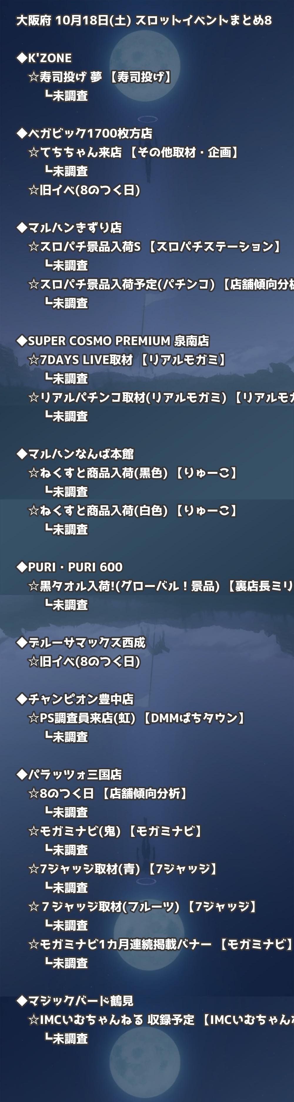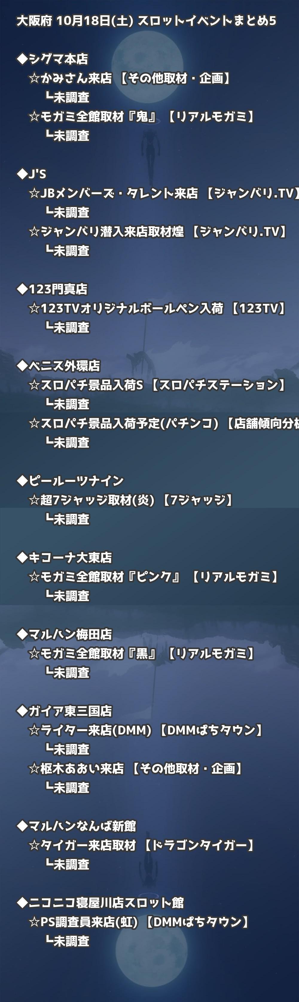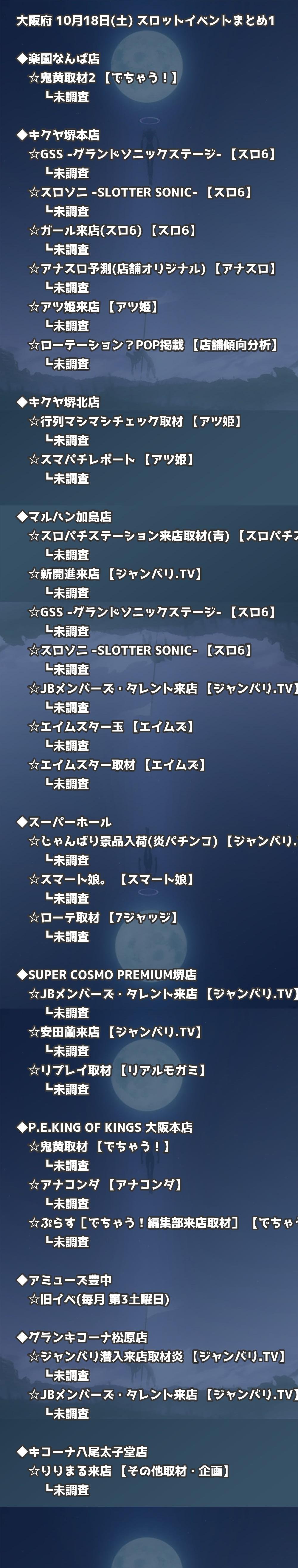 📊 大阪府 10月18日(土) 勝てるパチンコ・スロット取材店舗一覧|おすすめ順