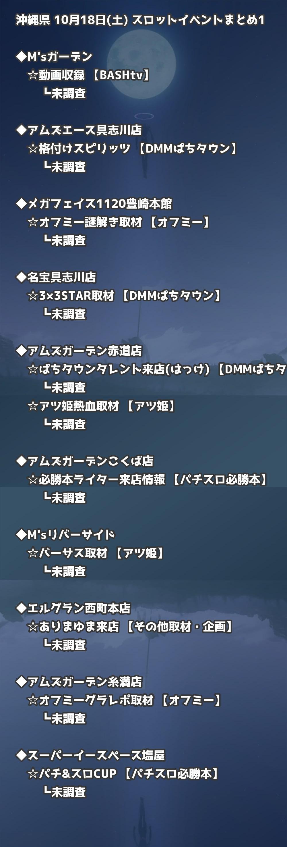 【沖縄県】10月18日(土) パチンコホールイベント取材まとめ記事です。