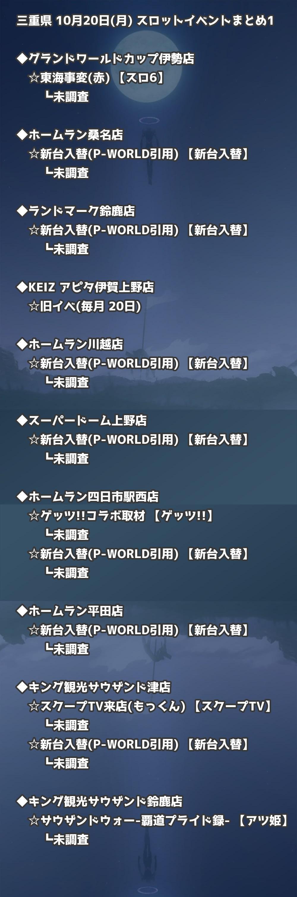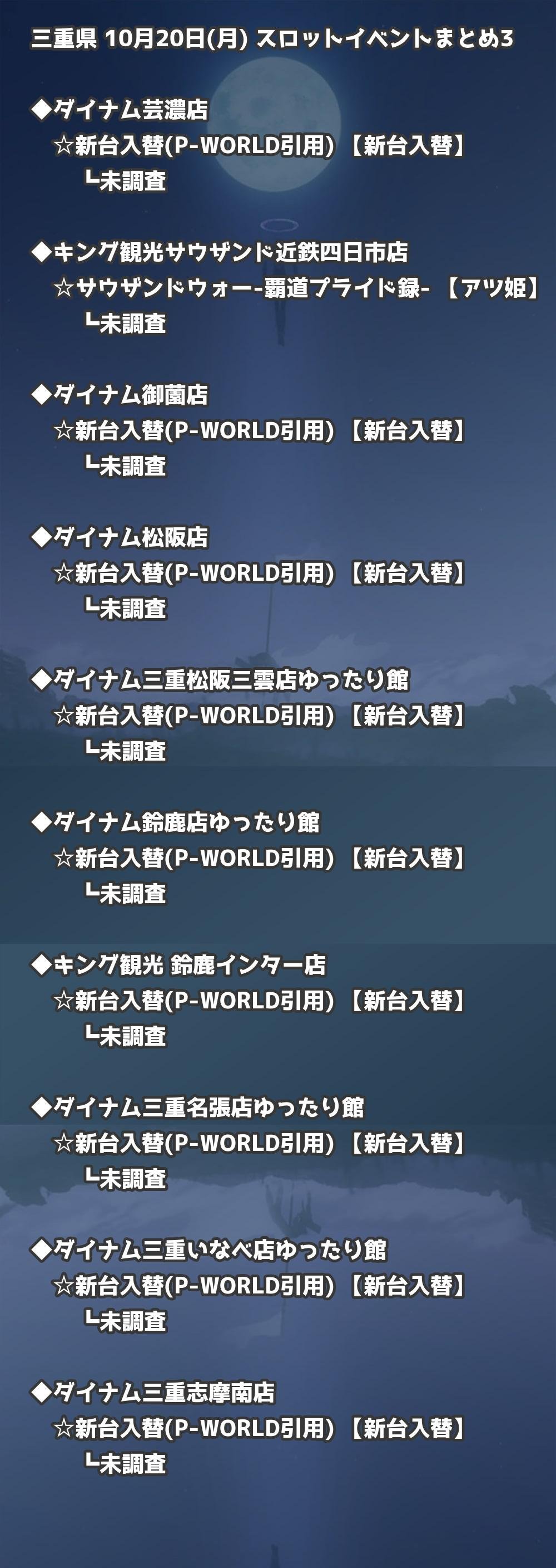 【三重県】10月20日(月) パチンコホールイベント取材まとめ記事です。