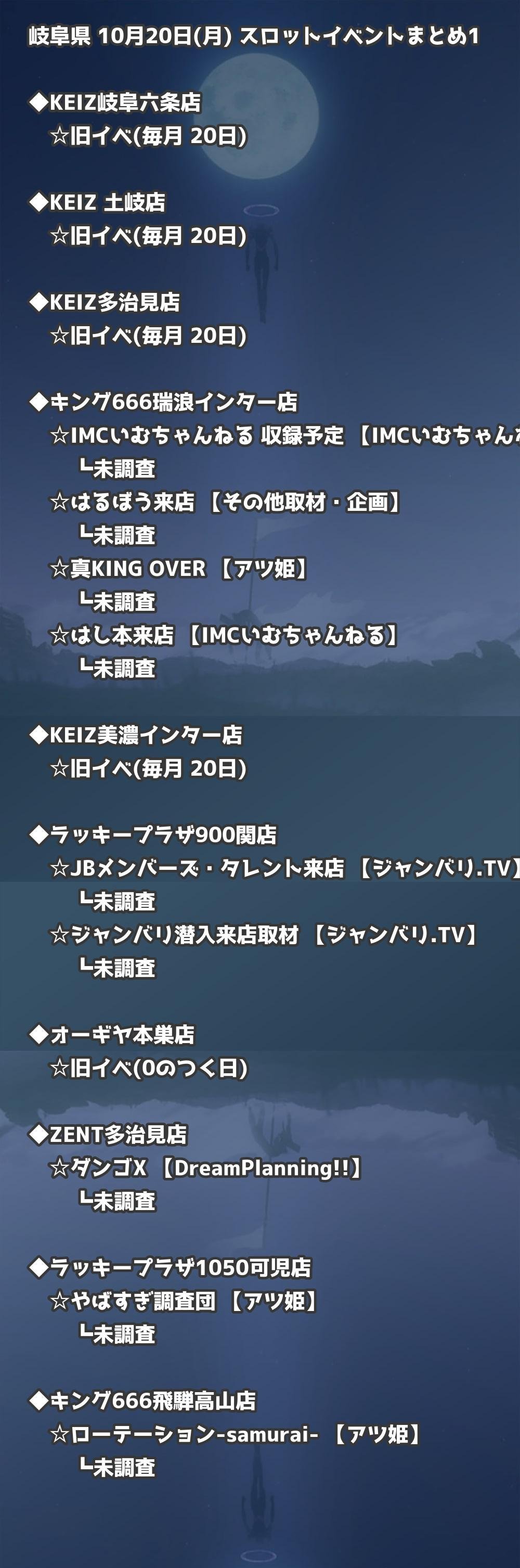 岐阜 10月20日(月) パチンコ取材|岐阜・大垣・多治見情報まとめ