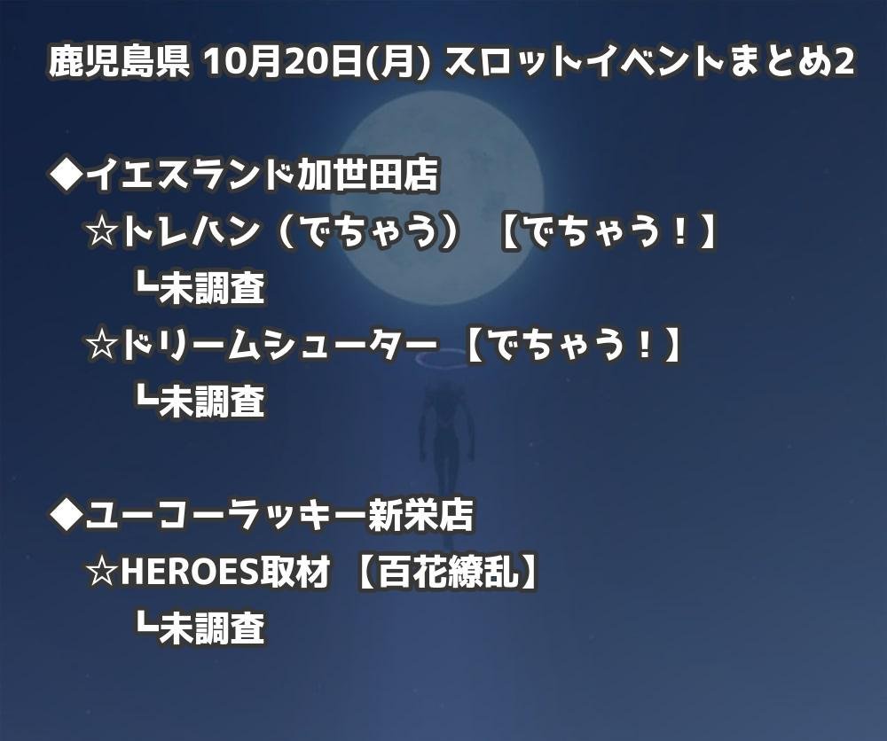 【鹿児島県】10月20日(月) パチンコホールイベント取材まとめ記事です。