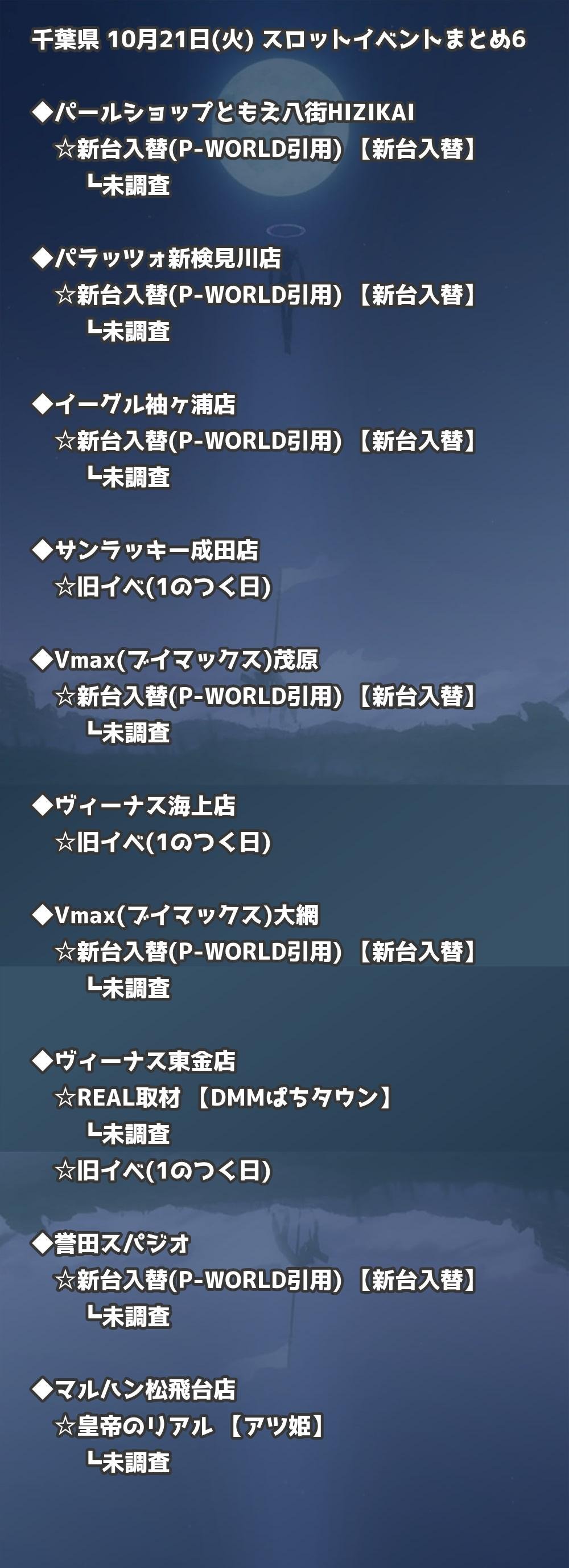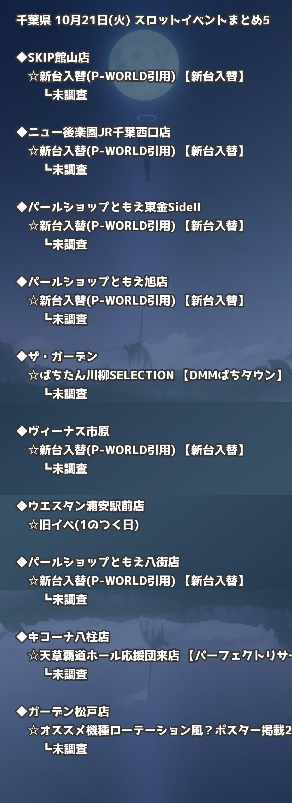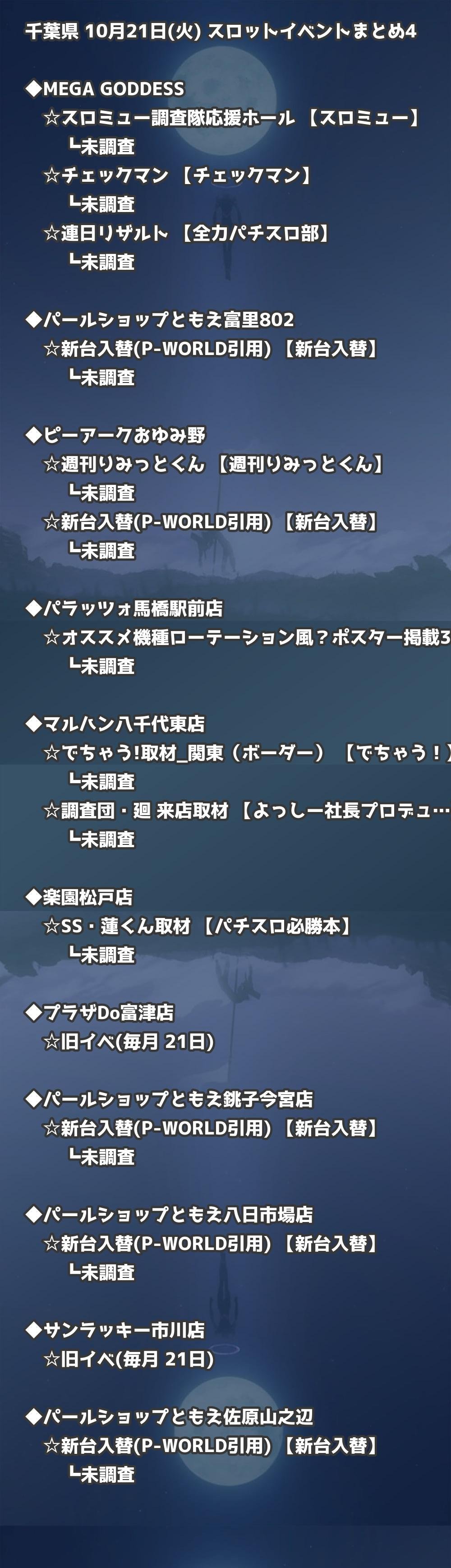 📊 千葉県 10月21日(火) 勝てるパチンコ・スロット取材店舗一覧|おすすめ順