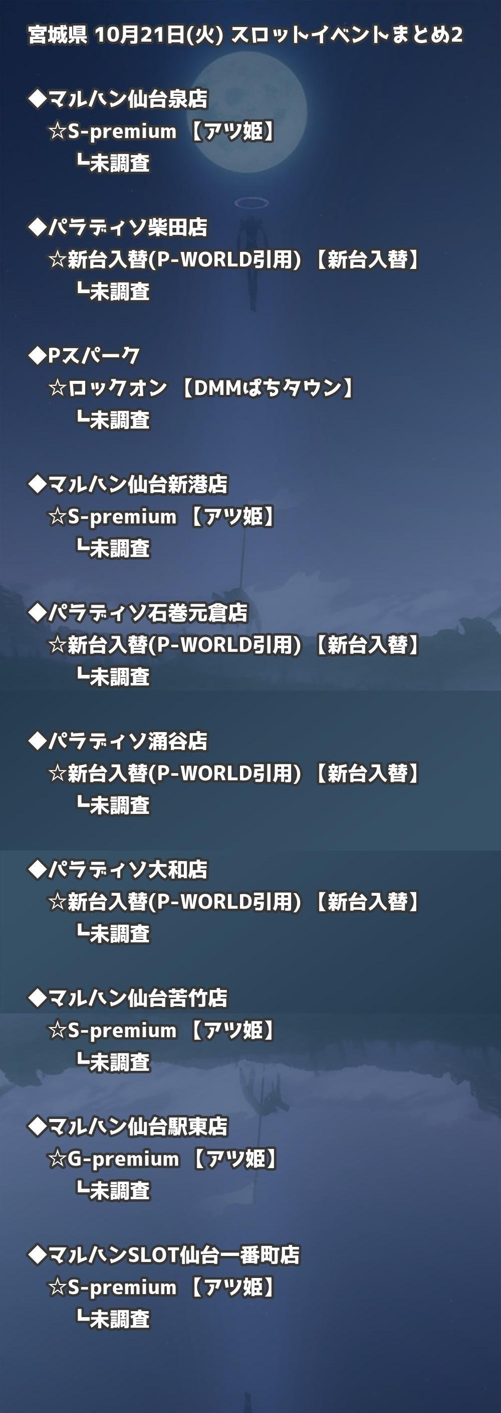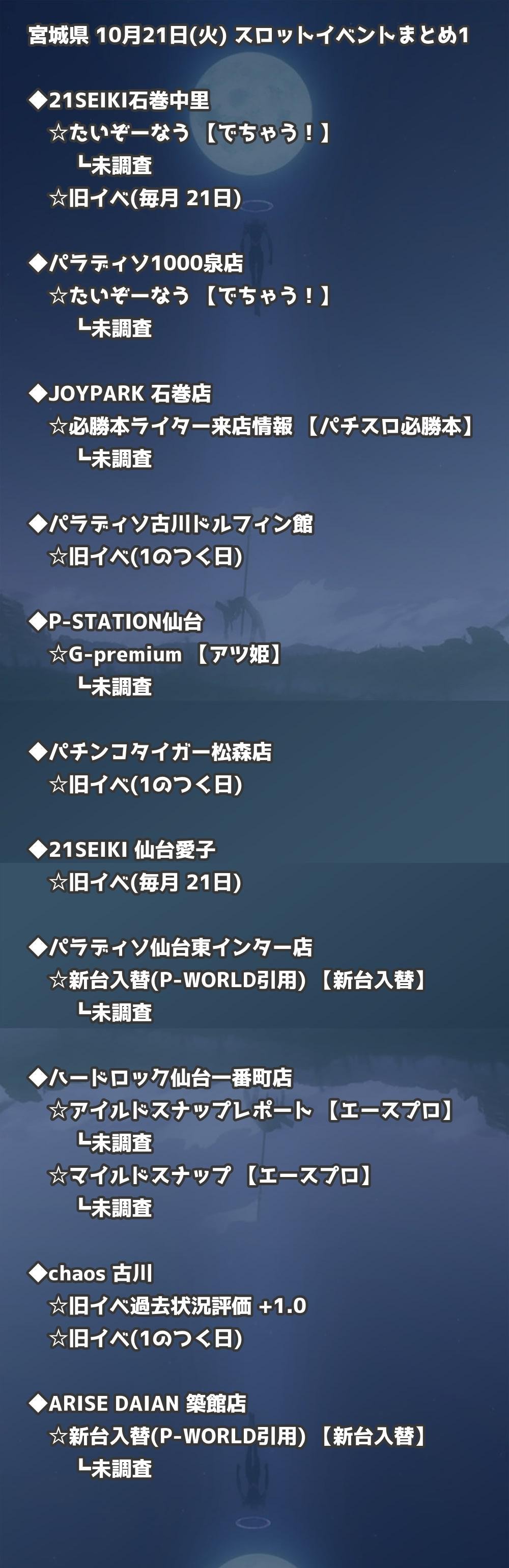 【宮城県】10月21日(火) パチンコホールイベント取材まとめ記事です。