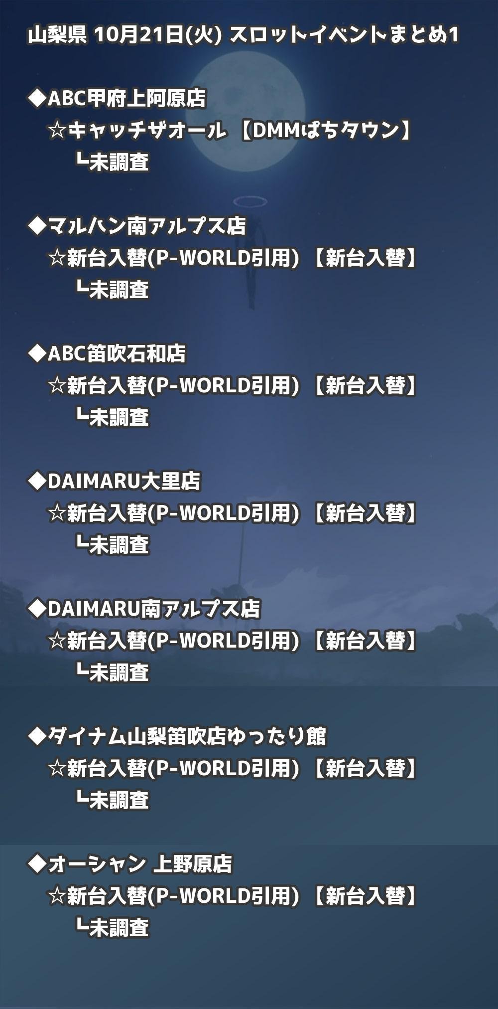 【山梨県】10月21日(火) パチンコホールイベント取材まとめ記事です。