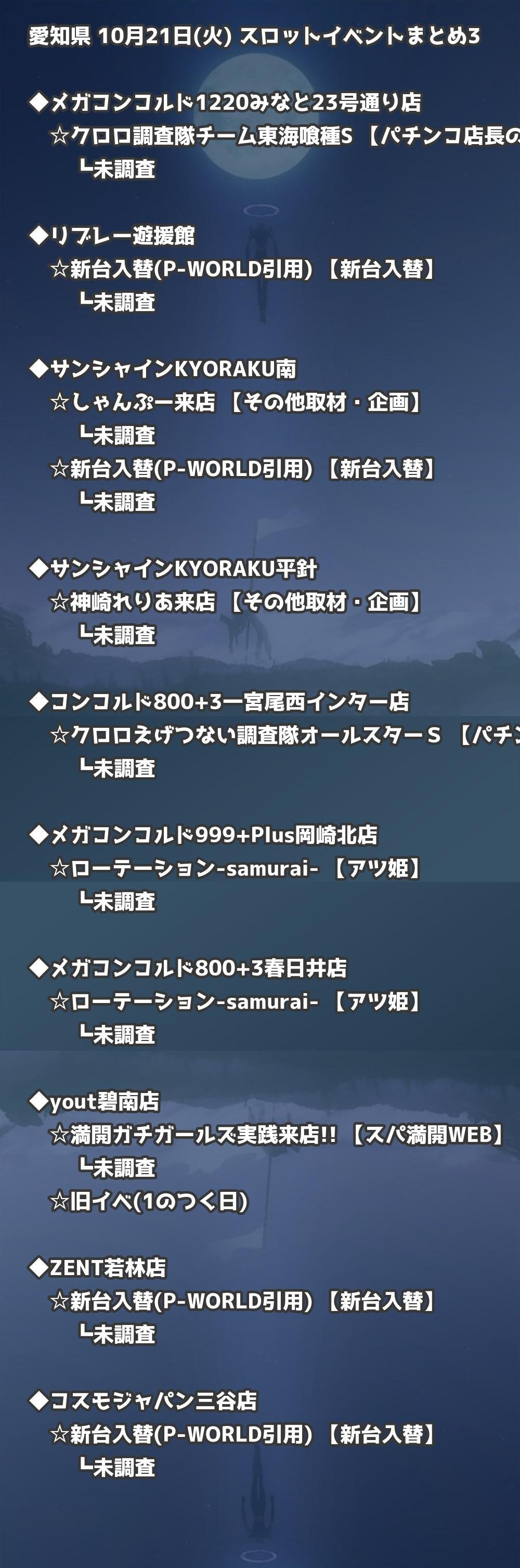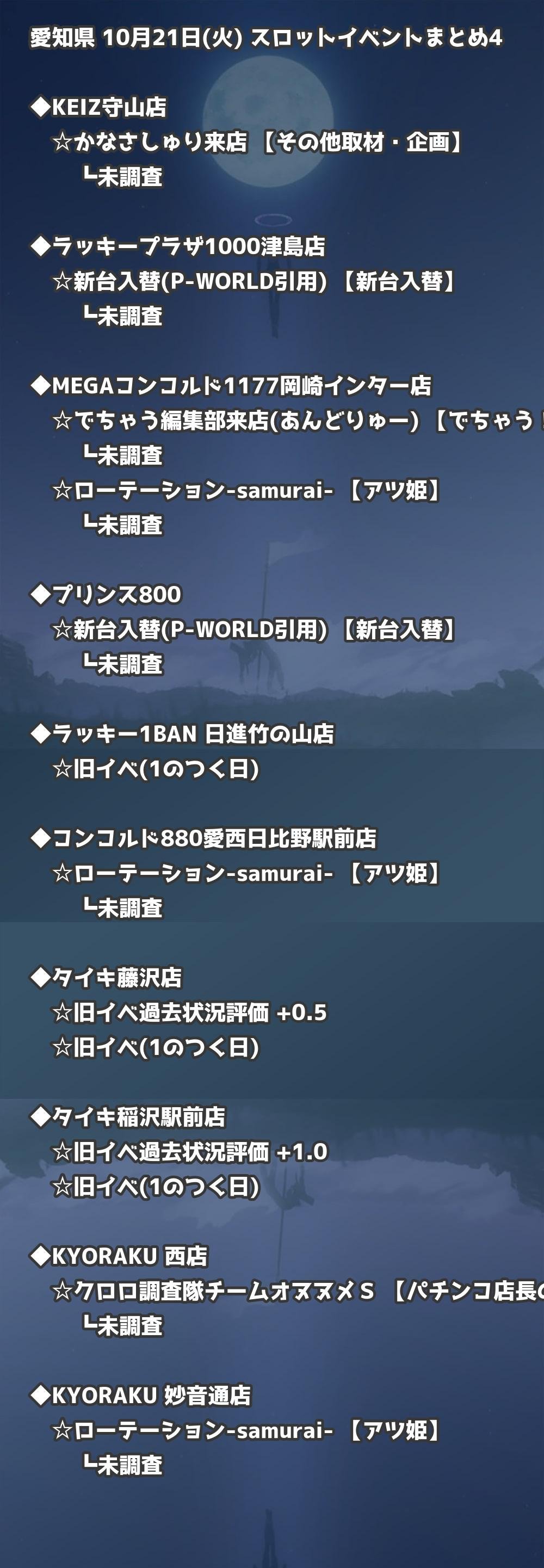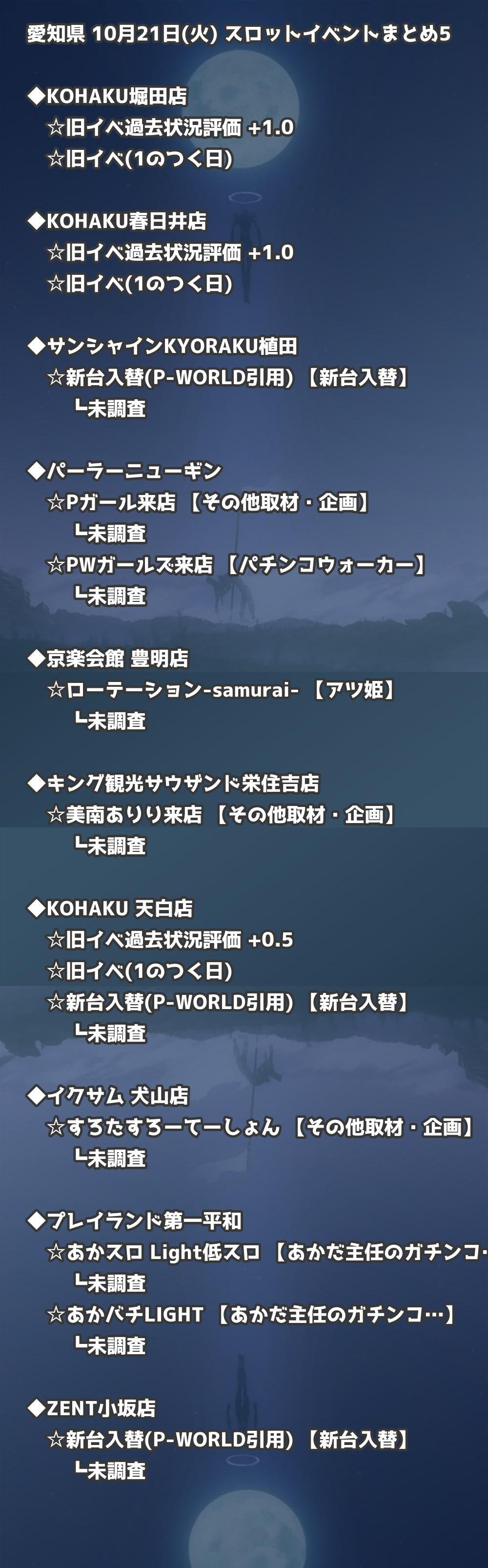 📊 愛知県 10月21日(火) 勝てるパチンコ・スロット取材店舗一覧|おすすめ順