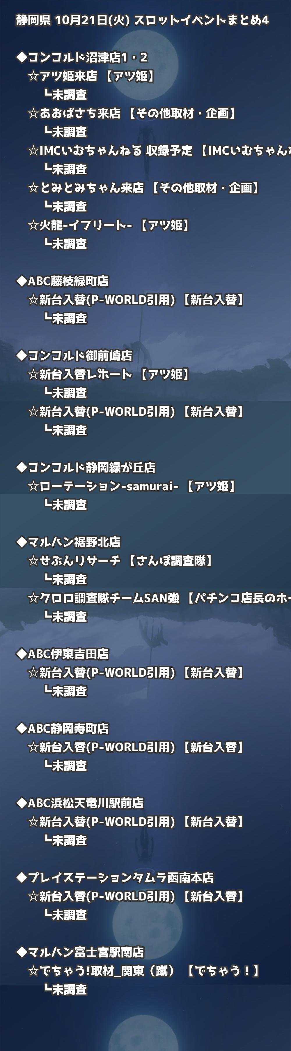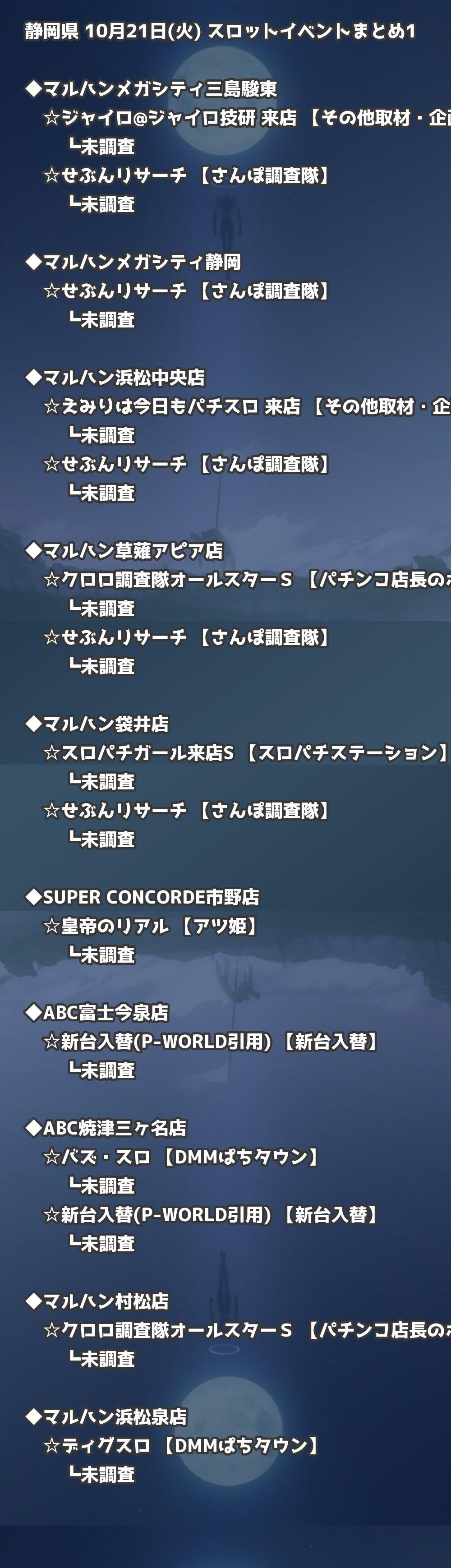 📊 静岡県 10月21日(火) 勝てるパチンコ・スロット取材店舗一覧|おすすめ順