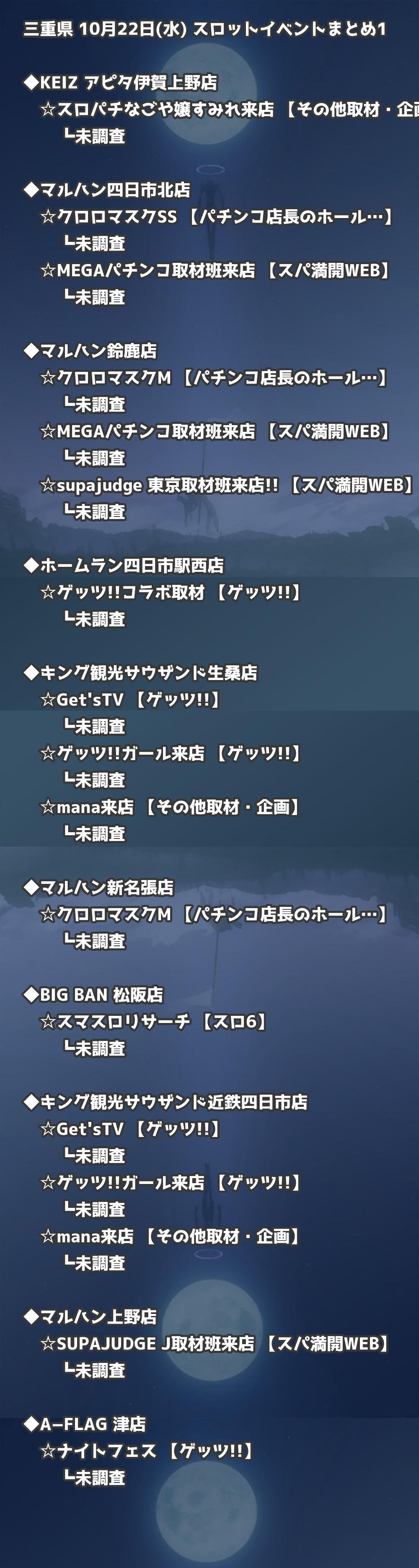📊 三重県 10月22日(水) 勝てるパチンコ・スロット取材店舗一覧|おすすめ順