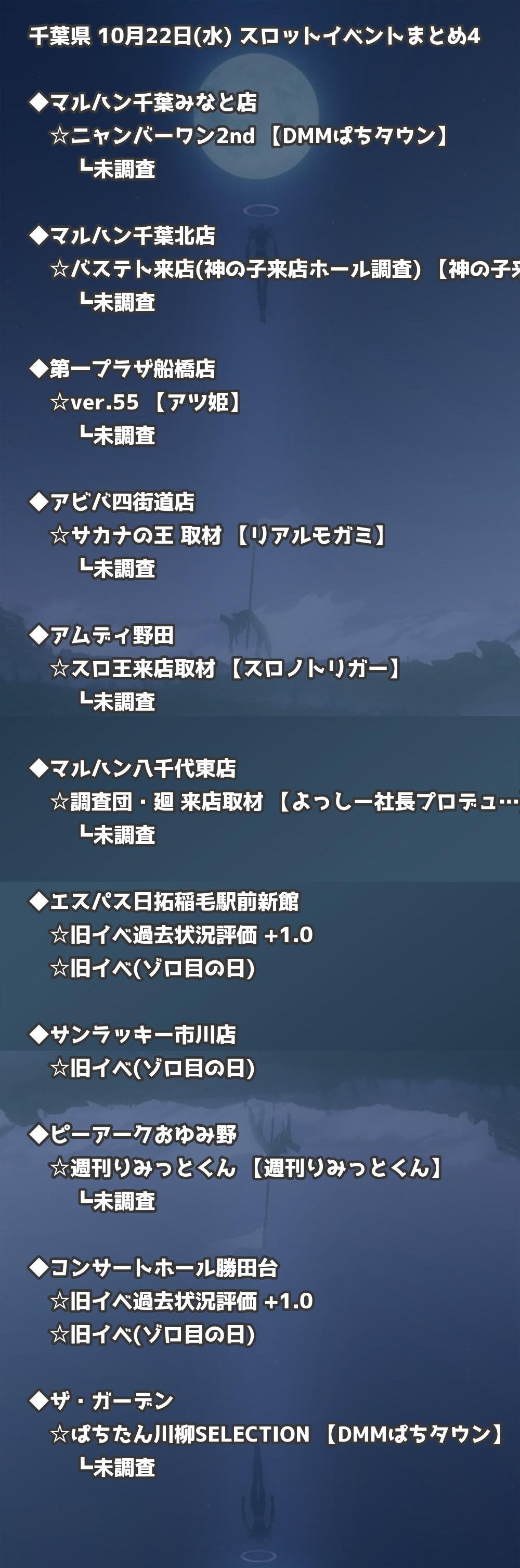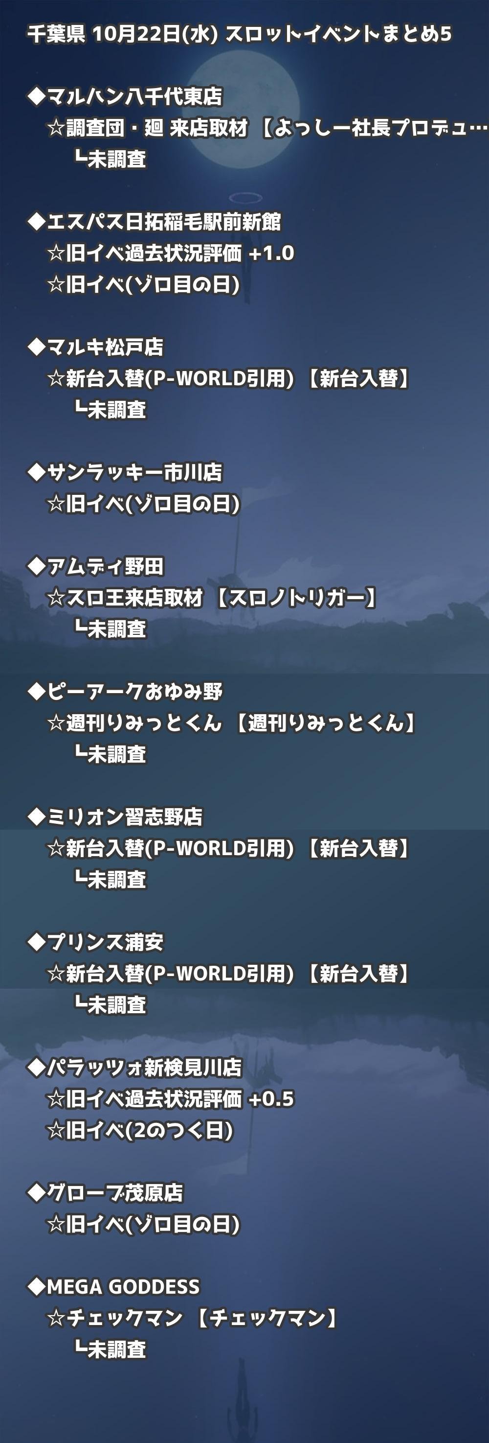 📊 千葉県 10月22日(水) 勝てるパチンコ・スロット取材店舗一覧|おすすめ順
