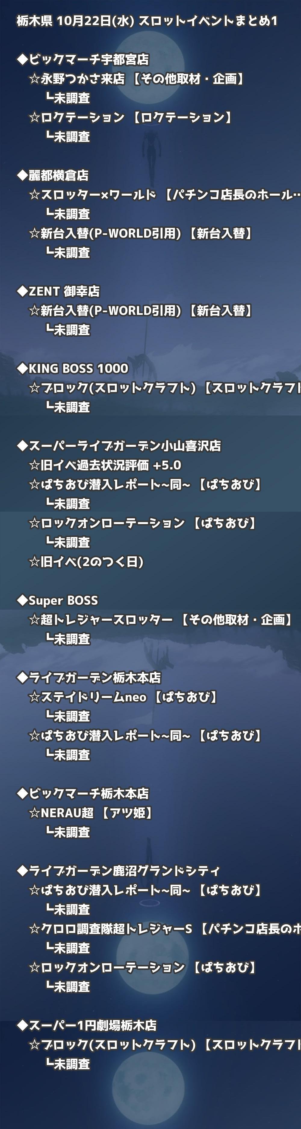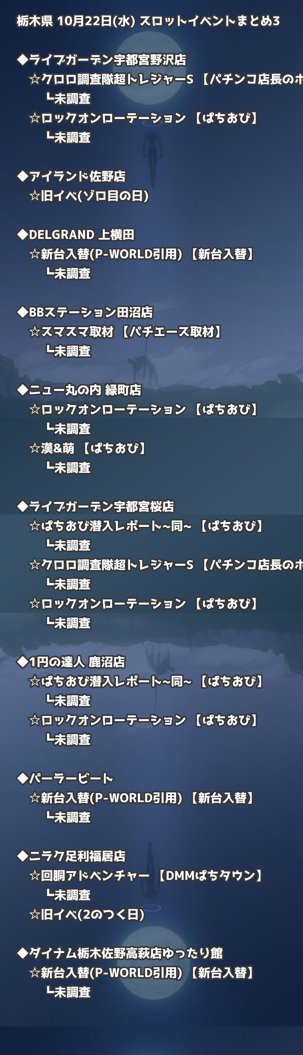 【栃木県】10月22日(水) パチンコホールイベント取材まとめ記事です。