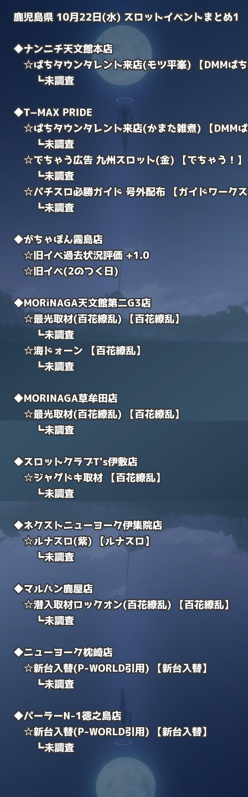 📊 鹿児島県 10月22日(水) 勝てるパチンコ・スロット取材店舗一覧|おすすめ順