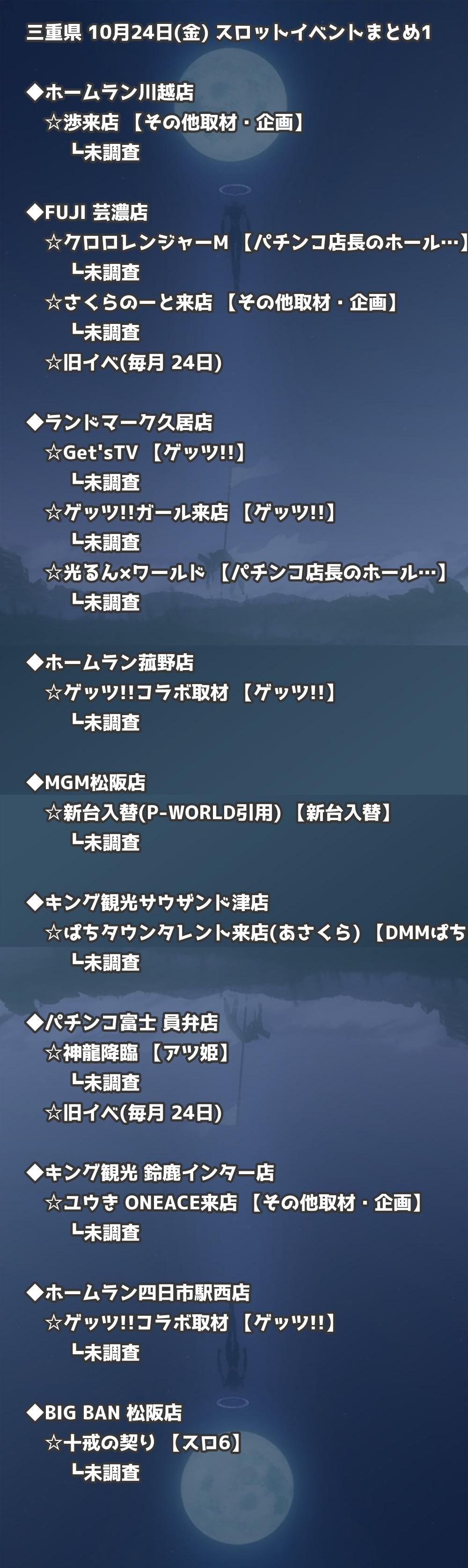📊 三重県 10月24日(金) 勝てるパチンコ・スロット取材店舗一覧|おすすめ順
