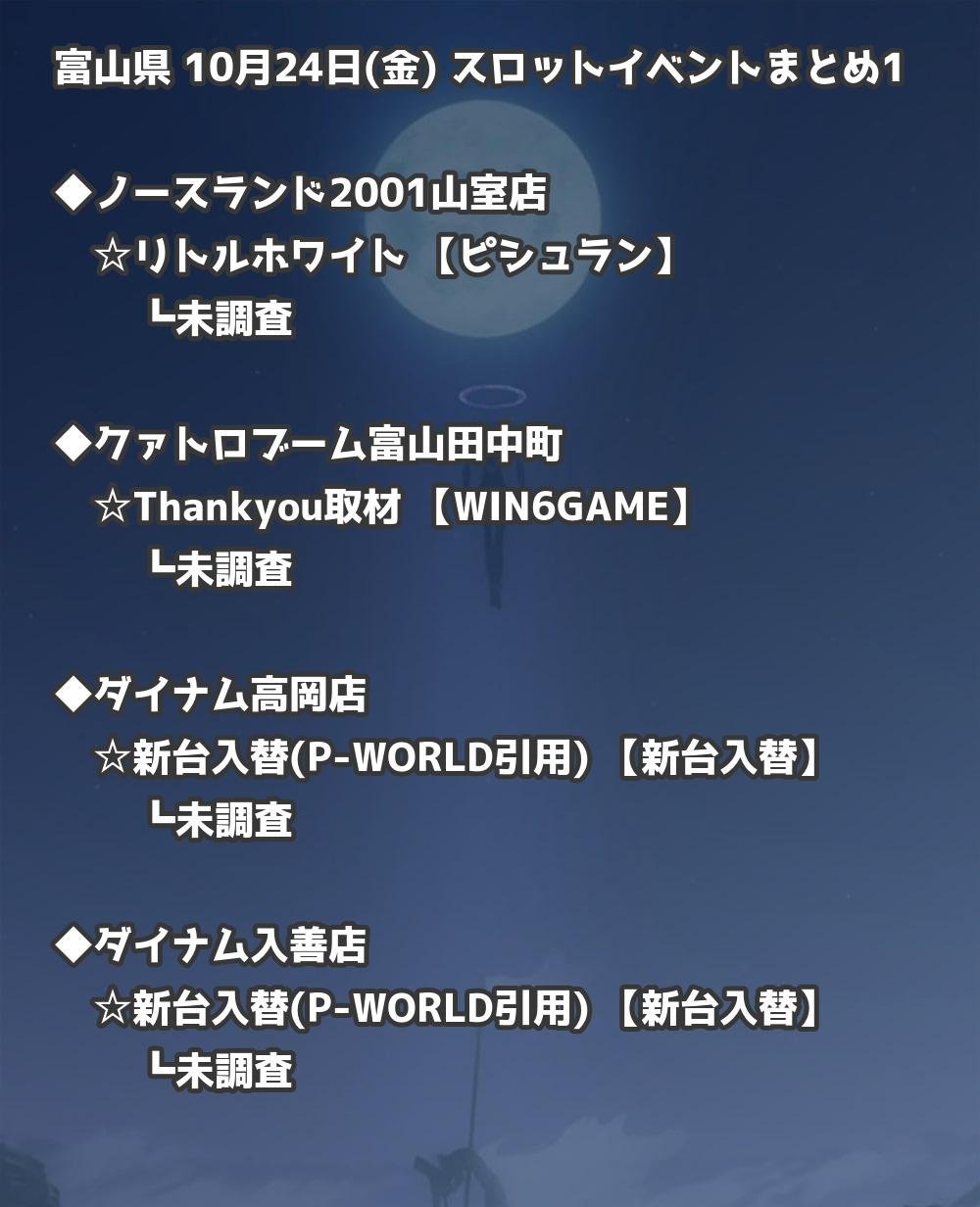 【富山県】10月24日(金) パチンコホールイベント取材まとめ記事です。