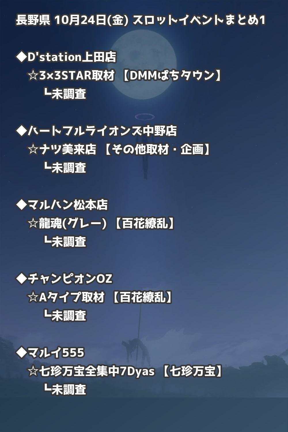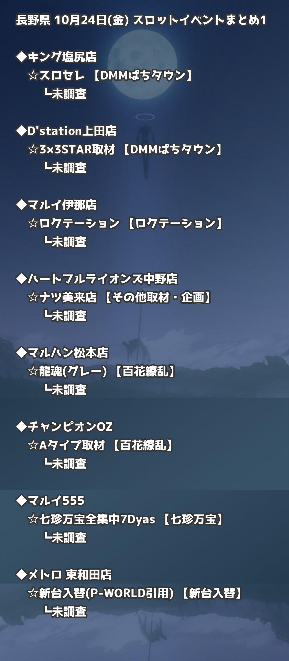 【長野県】10月24日(金) パチンコホールイベント取材まとめ記事です。