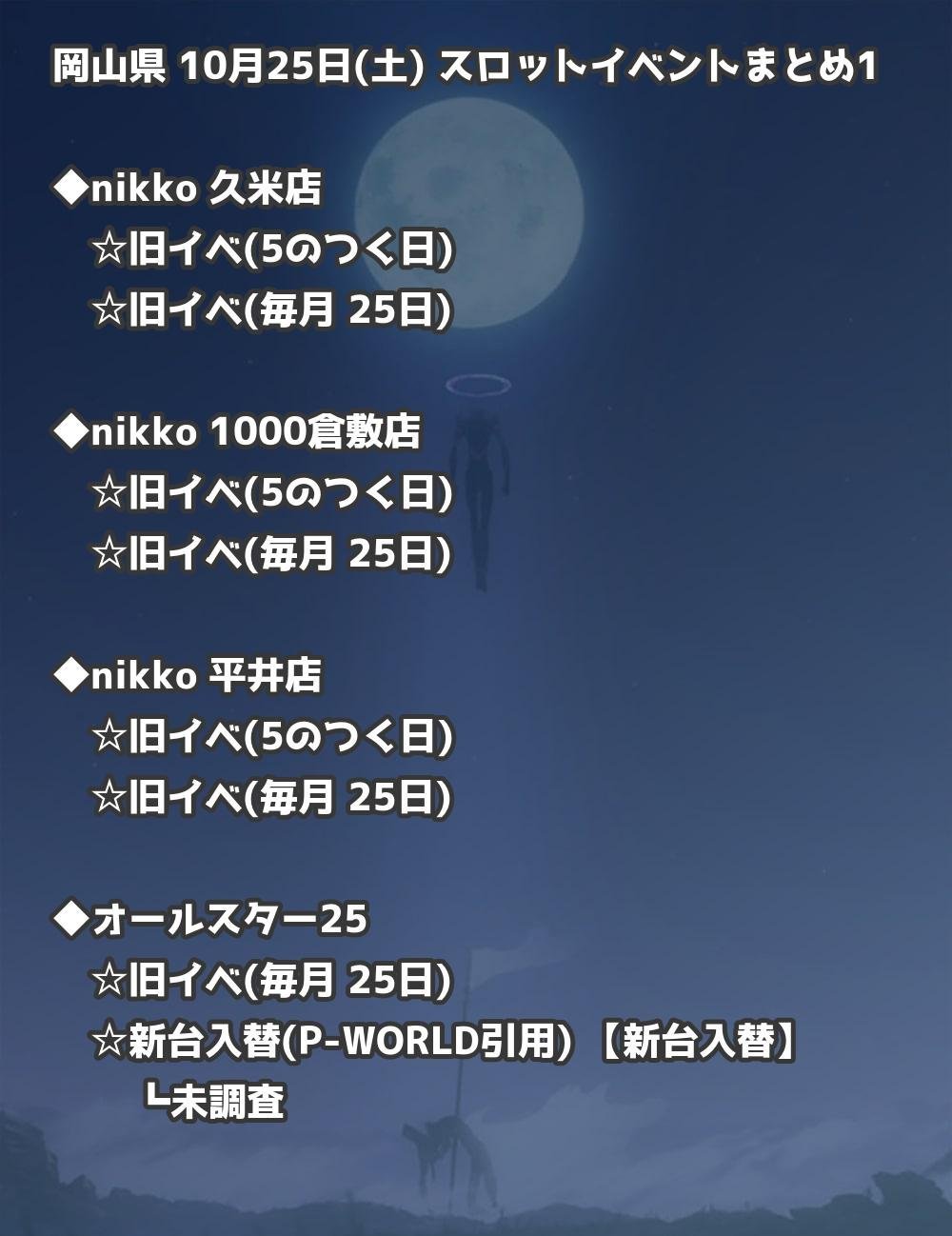 【岡山県】10月25日(土) パチンコホールイベント取材まとめ記事です。