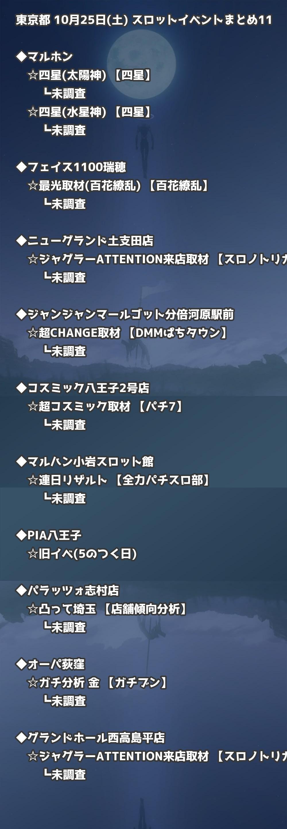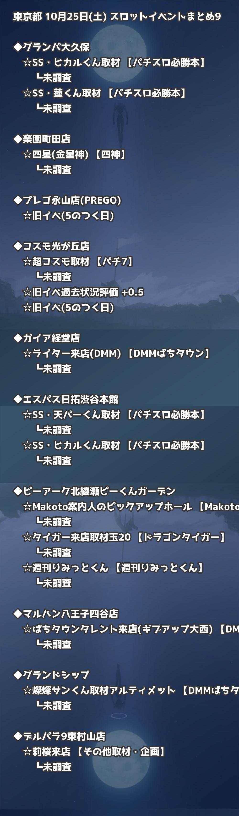 📊 東京都 10月25日(土) 勝てるパチンコ・スロット取材店舗一覧|おすすめ順