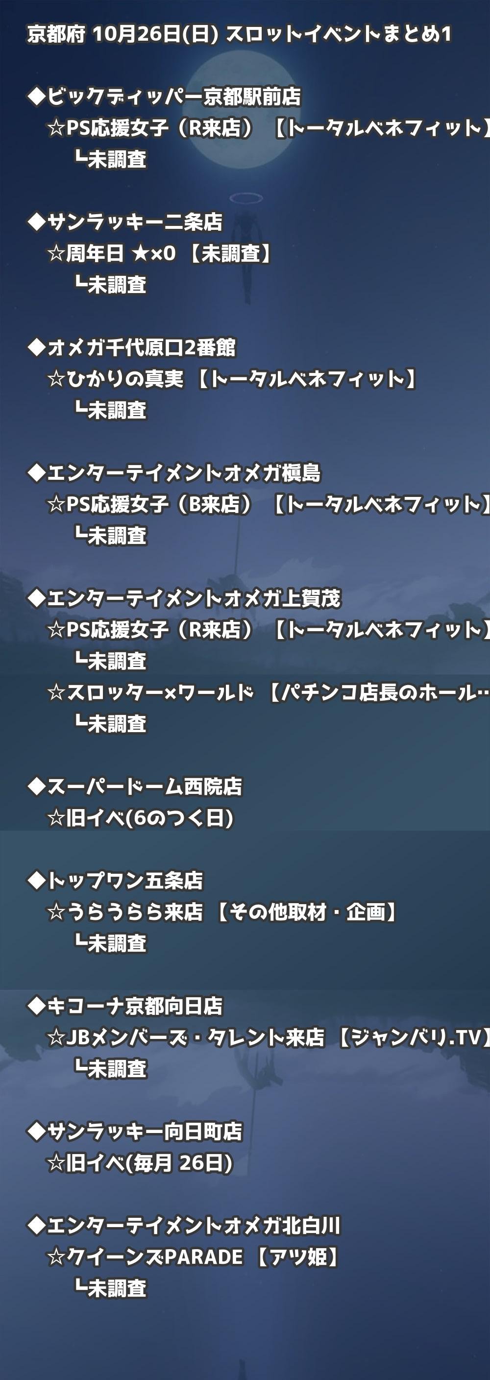 📊 京都府 10月26日(日) 勝てるパチンコ・スロット取材店舗一覧|おすすめ順
