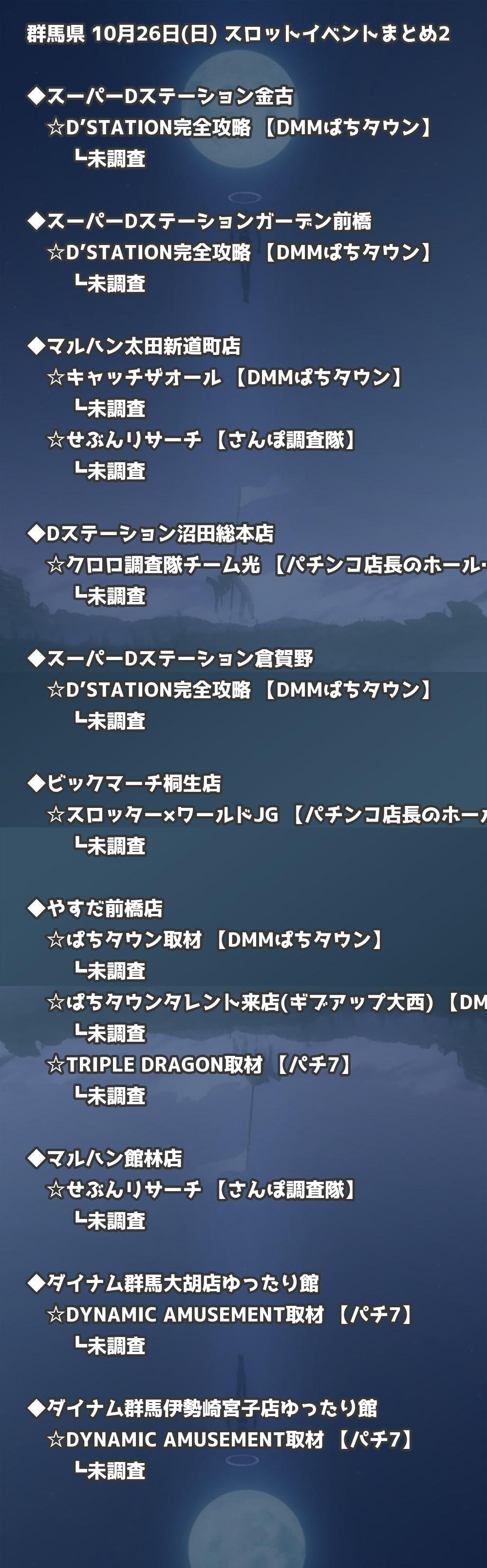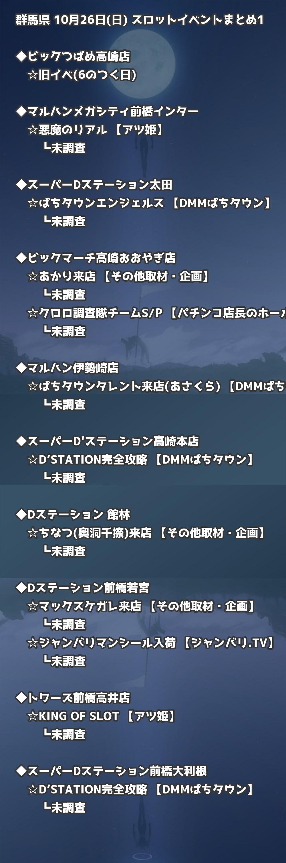 📊 群馬県 10月26日(日) 勝てるパチンコ・スロット取材店舗一覧|おすすめ順