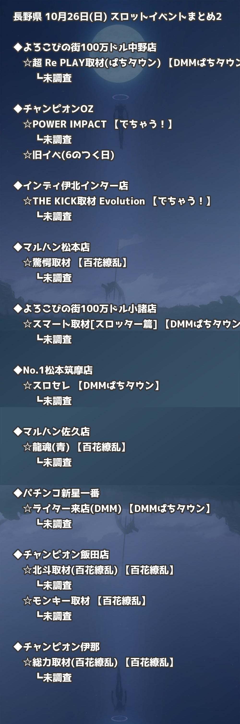 📊 長野県 10月26日(日) 勝てるパチンコ・スロット取材店舗一覧|おすすめ順