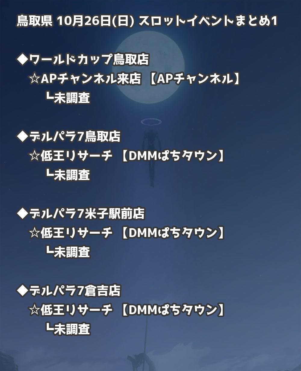 【鳥取県】10月26日(日) パチンコホールイベント取材まとめ記事です。