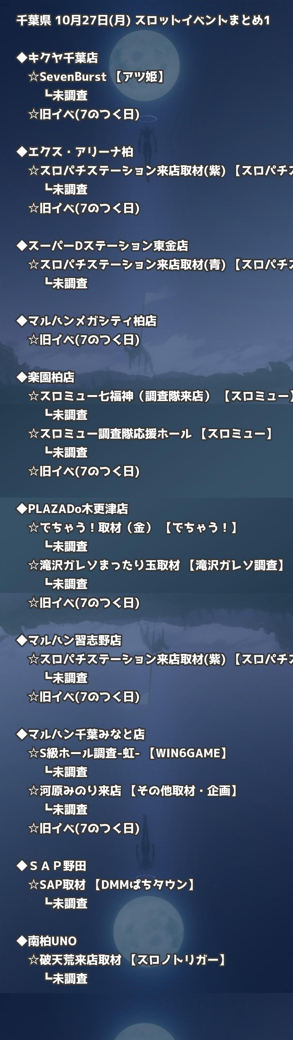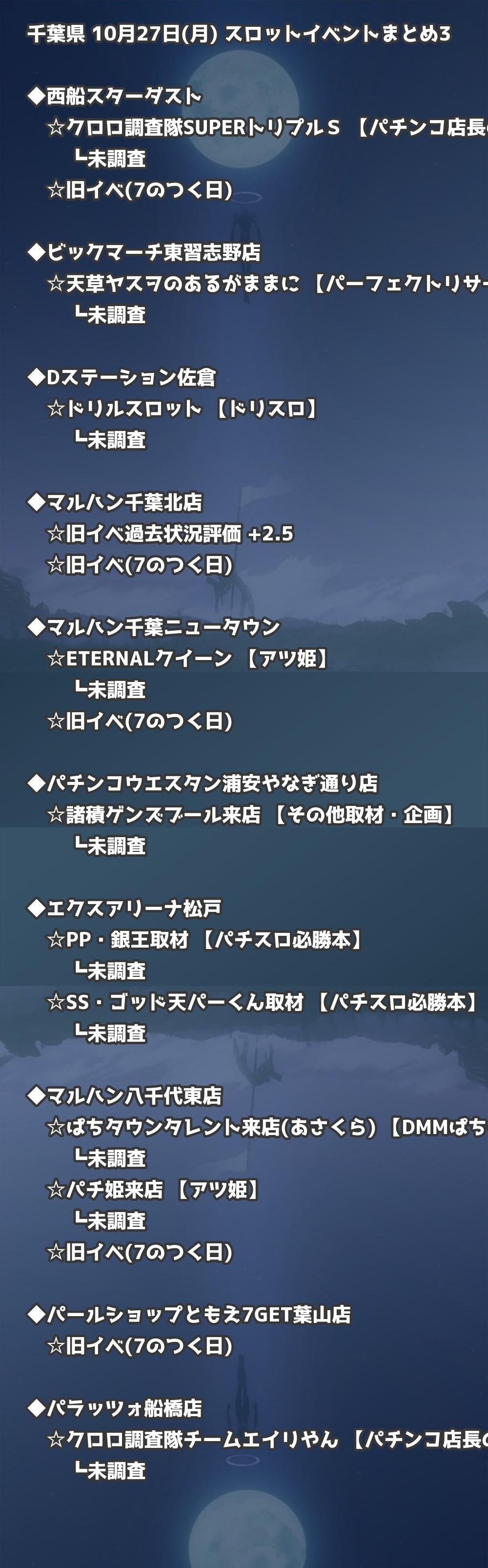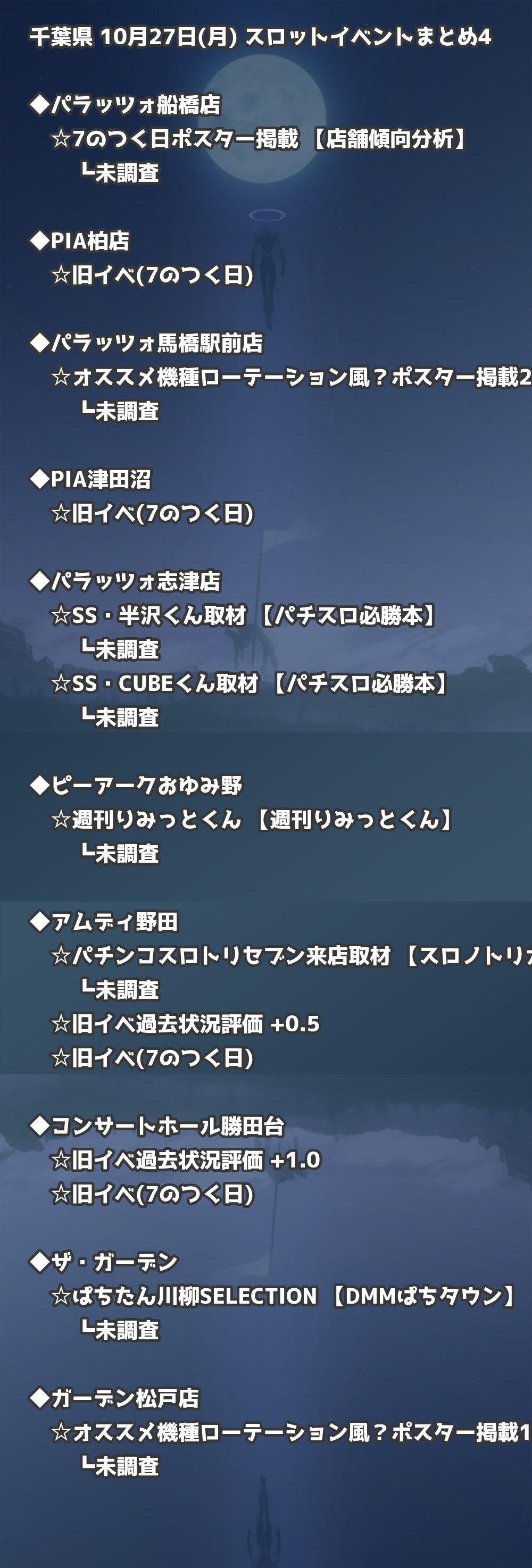 📊 千葉県 10月27日(月) 勝てるパチンコ・スロット取材店舗一覧|おすすめ順