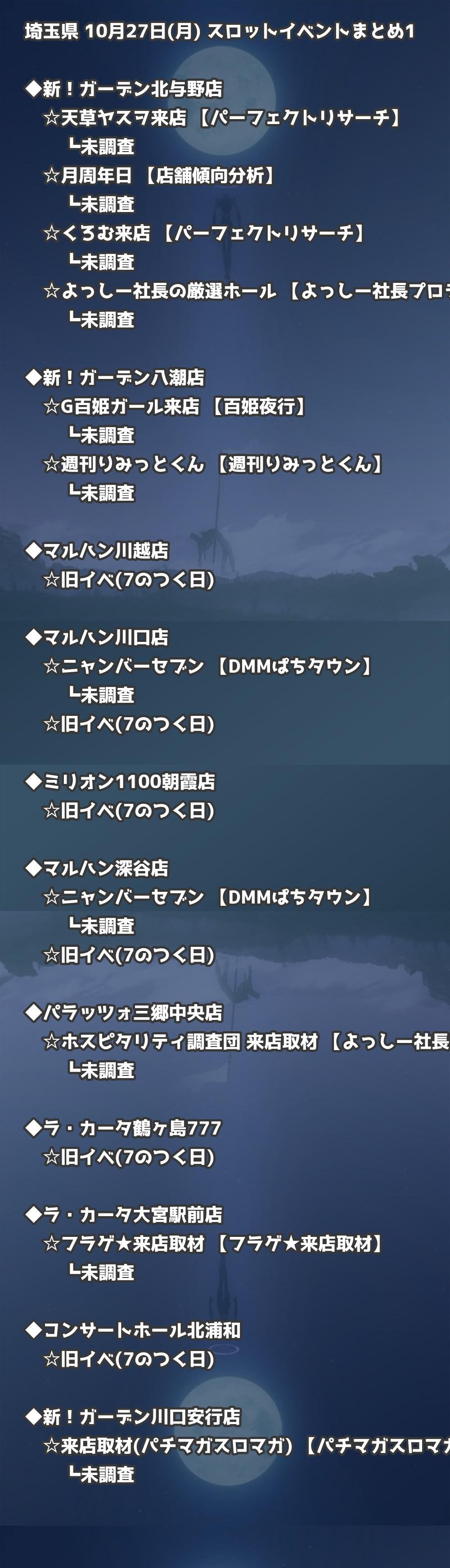 📊 埼玉県 10月27日(月) 勝てるパチンコ・スロット取材店舗一覧|おすすめ順