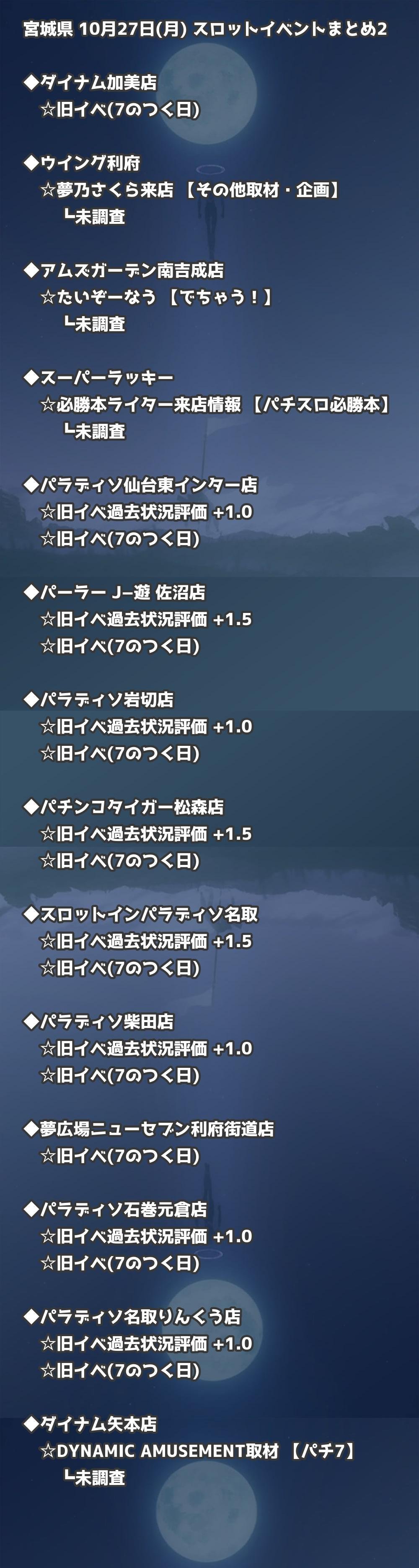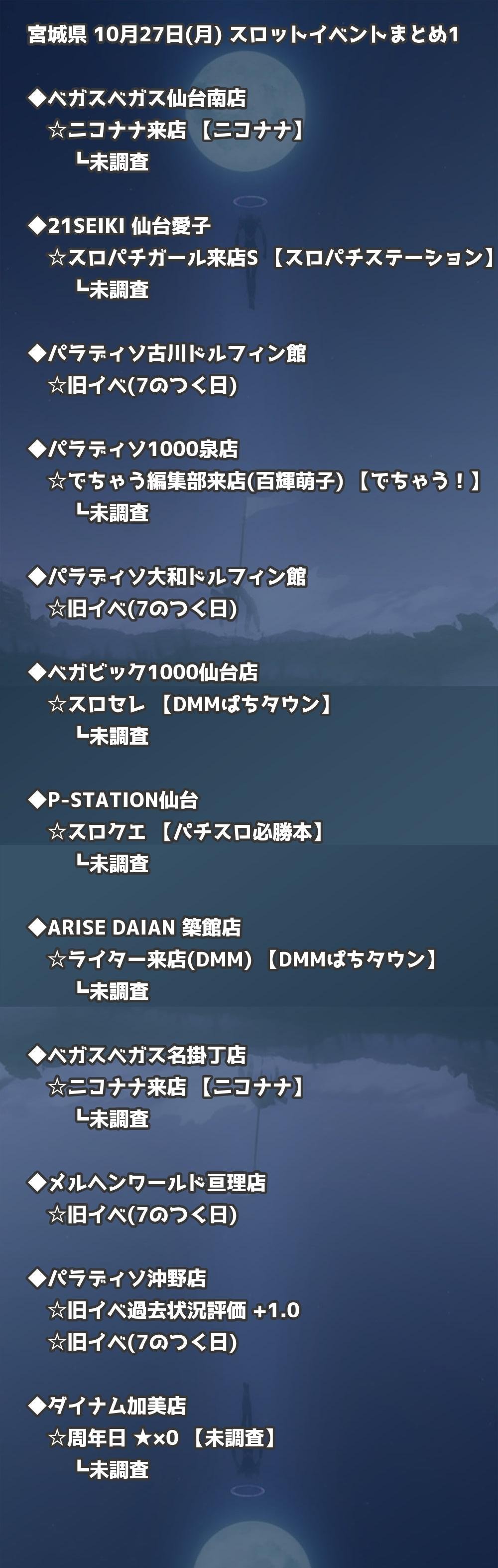【宮城県】10月27日(月) パチンコホールイベント取材まとめ記事です。