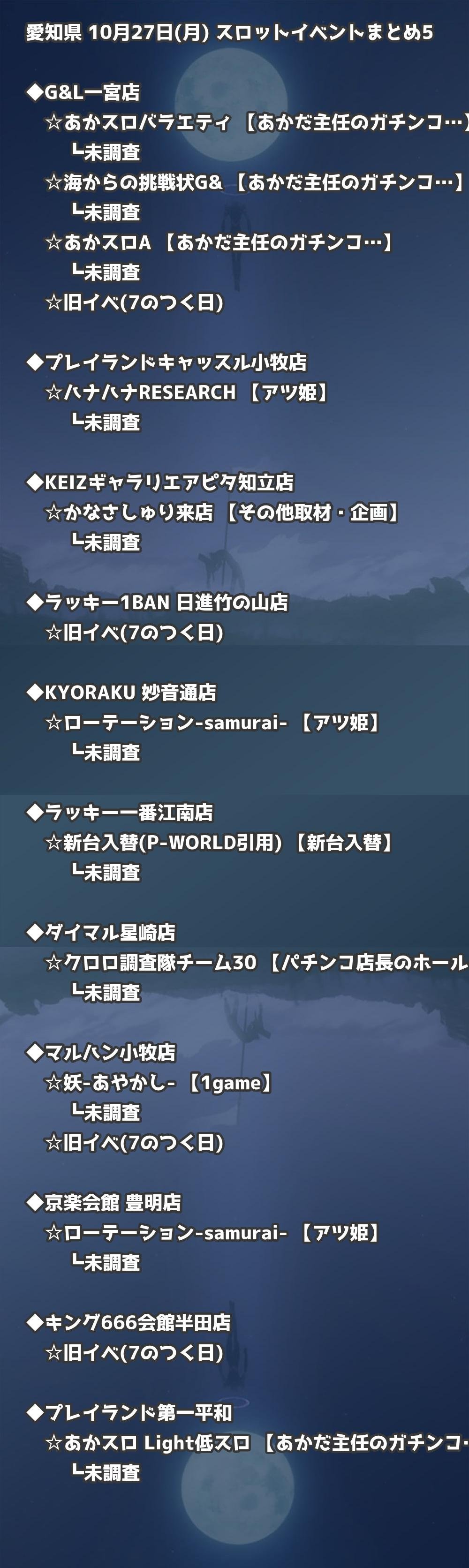 📊 愛知県 10月27日(月) 勝てるパチンコ・スロット取材店舗一覧|おすすめ順