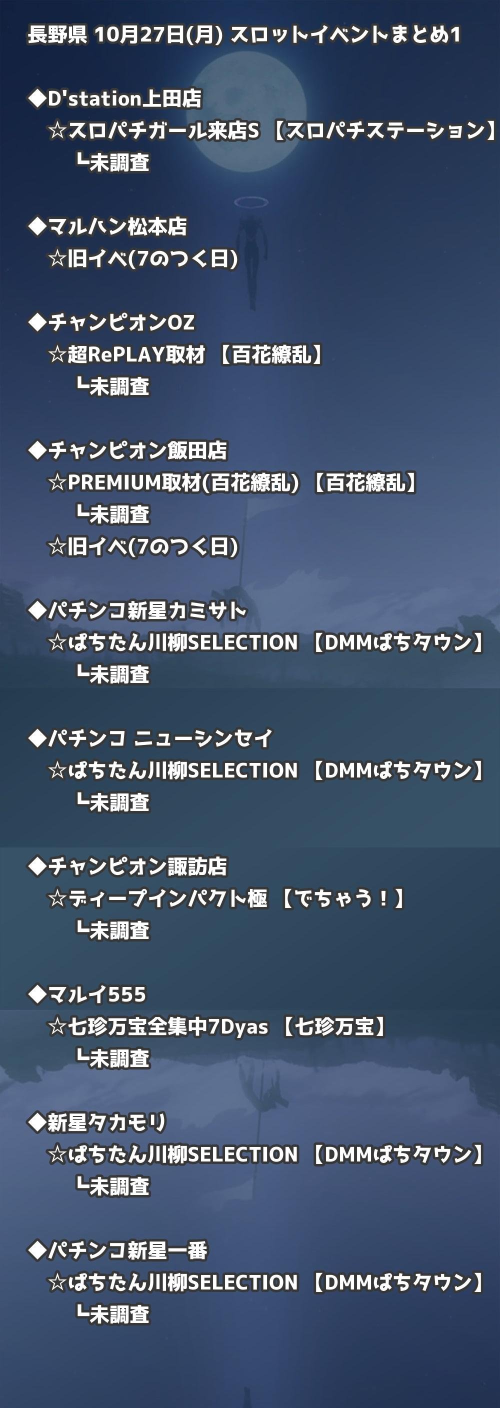 【長野県】10月27日(月) パチンコホールイベント取材まとめ記事です。