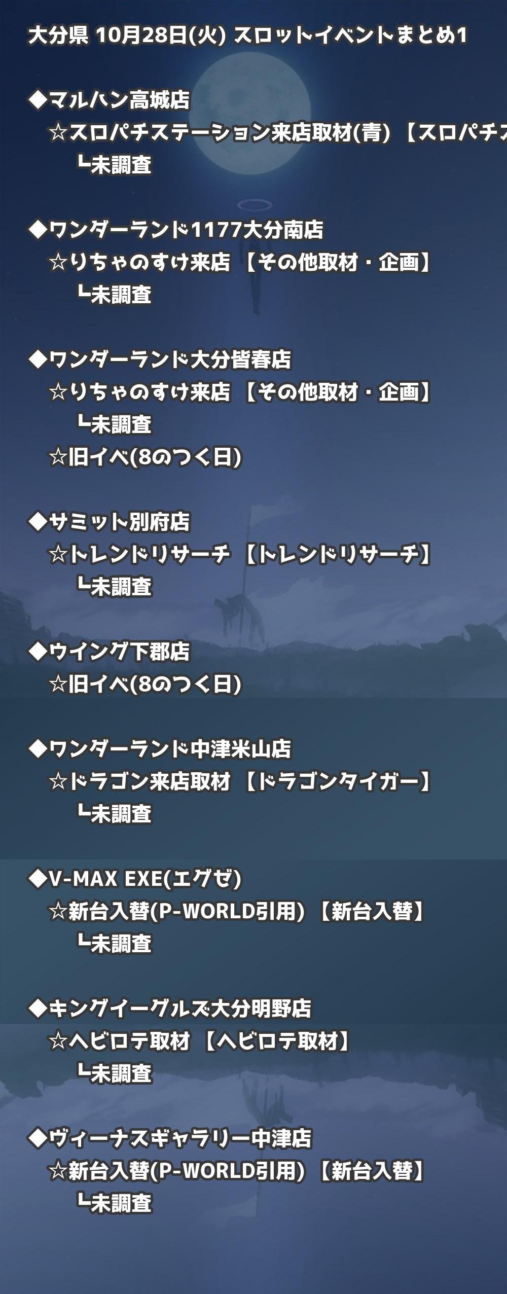 【大分県】10月28日(火) パチンコホールイベント取材まとめ記事です。