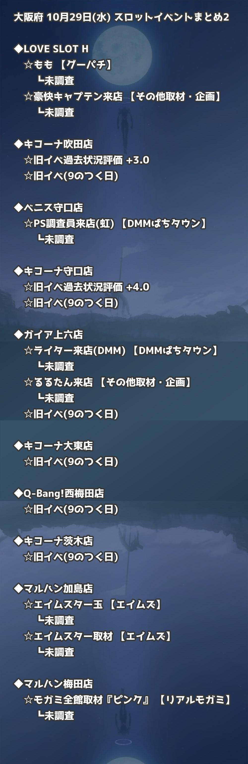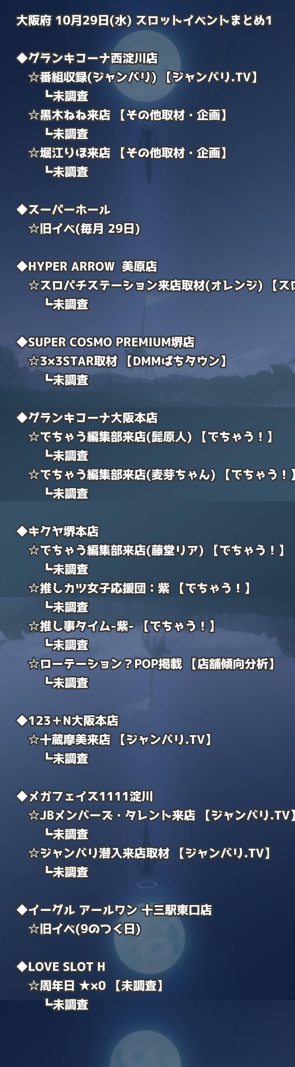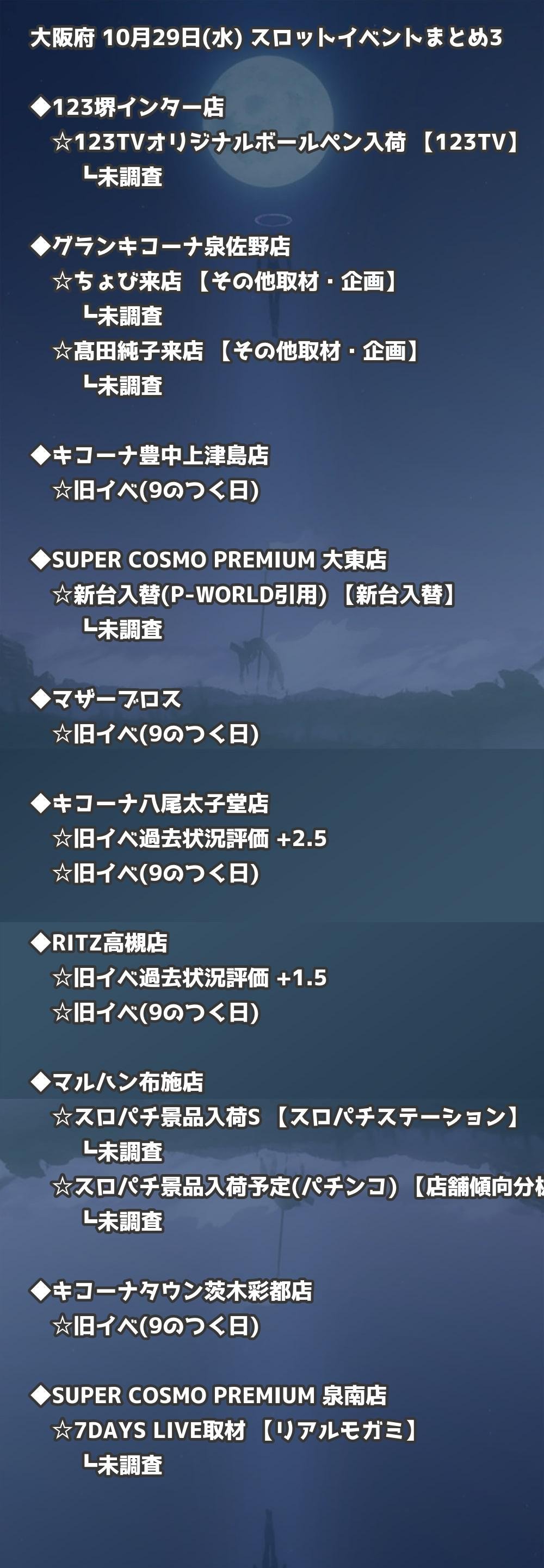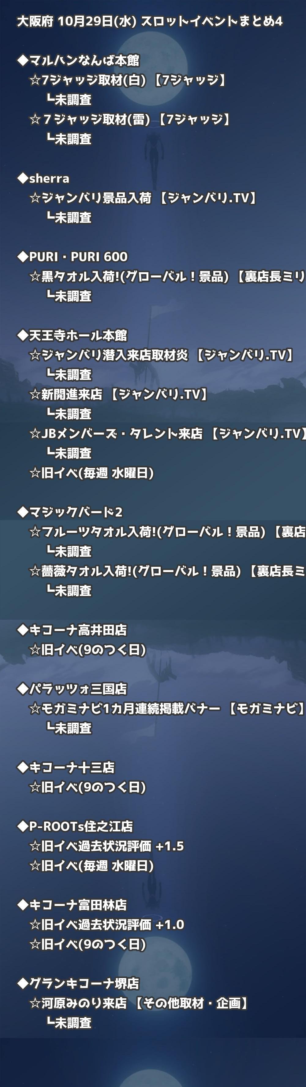 📊 大阪府 10月29日(水) 勝てるパチンコ・スロット取材店舗一覧|おすすめ順