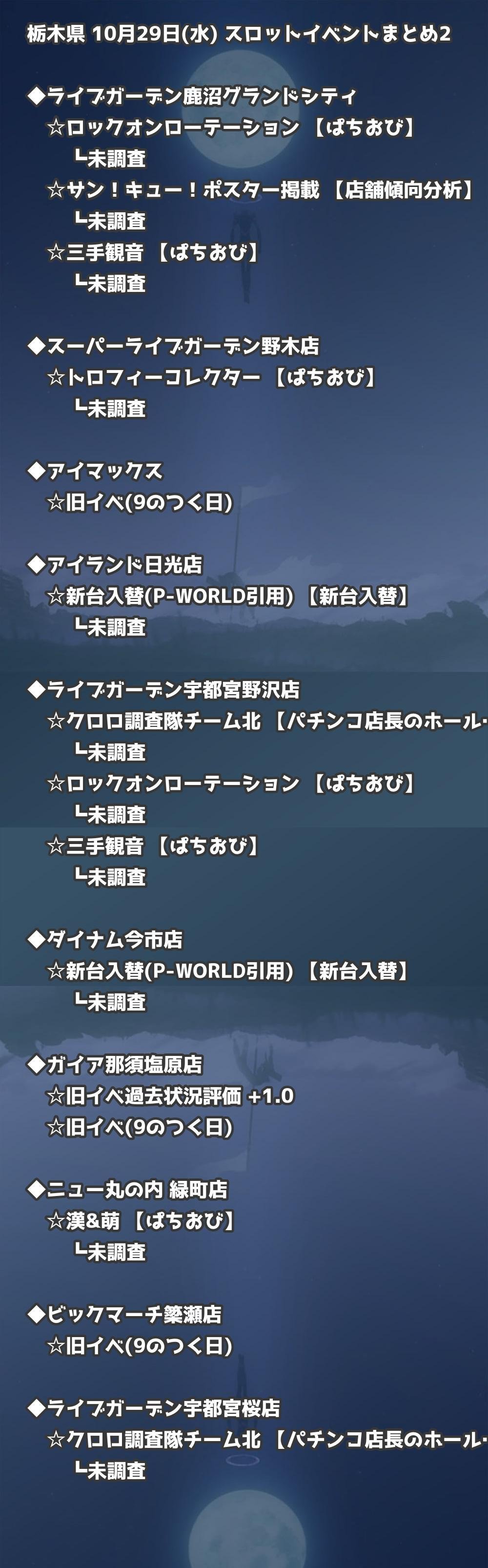 【栃木県】10月29日(水) パチンコホールイベント取材まとめ記事です。