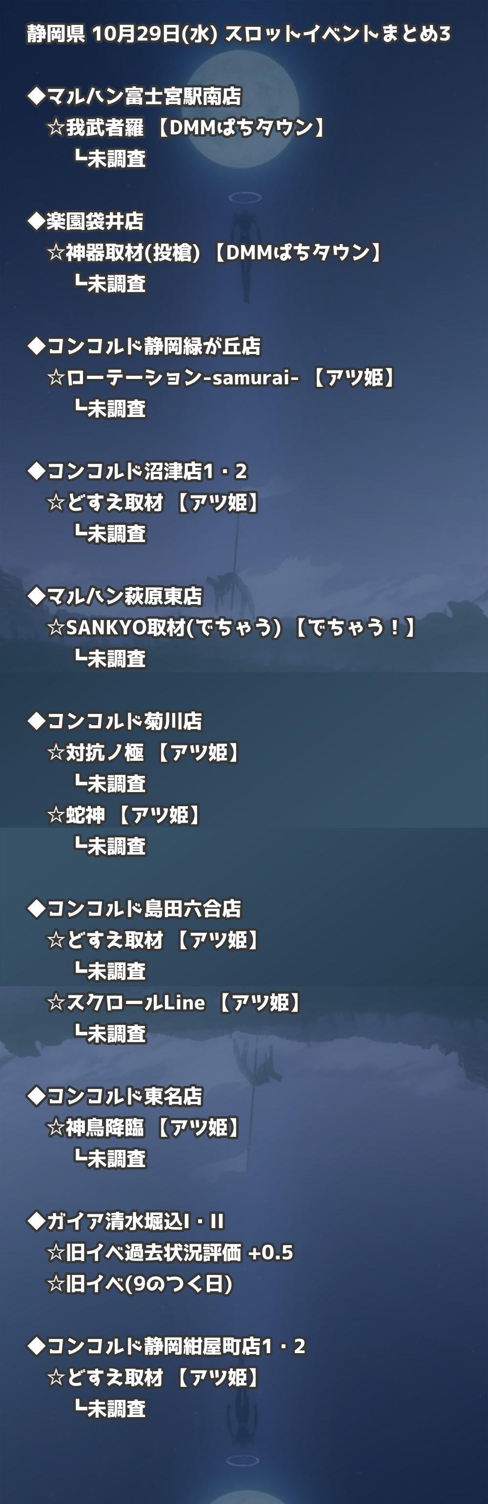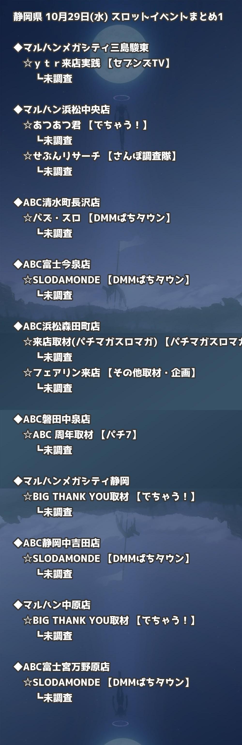 📊 静岡県 10月29日(水) 勝てるパチンコ・スロット取材店舗一覧|おすすめ順