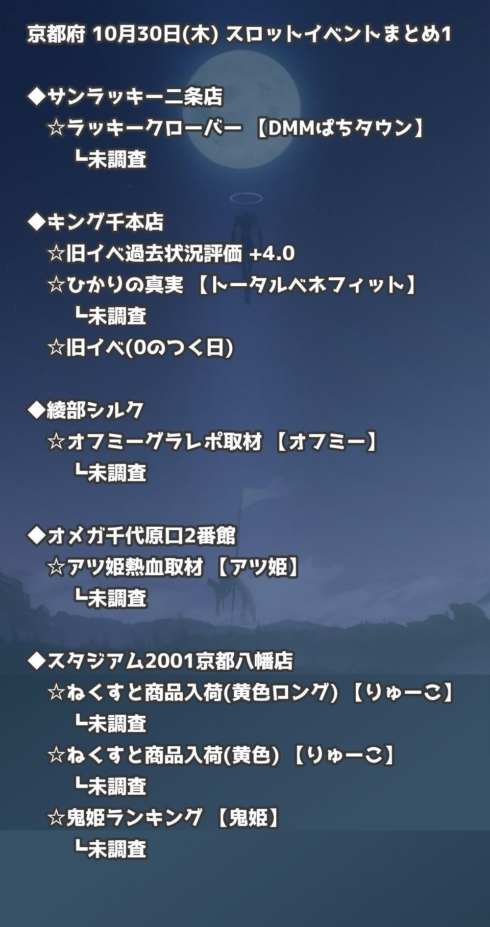 📊 京都府 10月30日(木) 勝てるパチンコ・スロット取材店舗一覧|おすすめ順