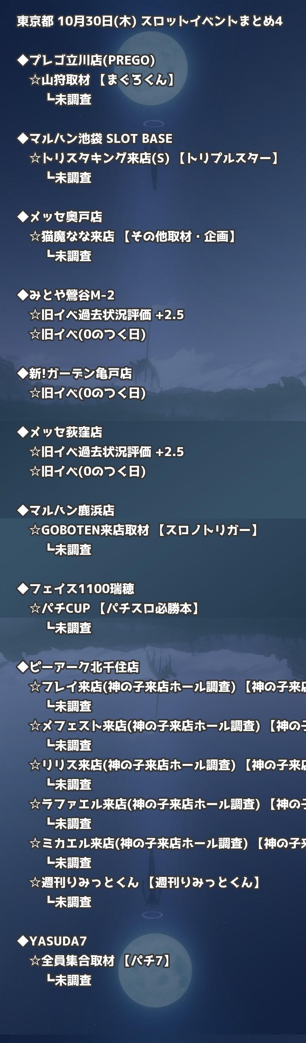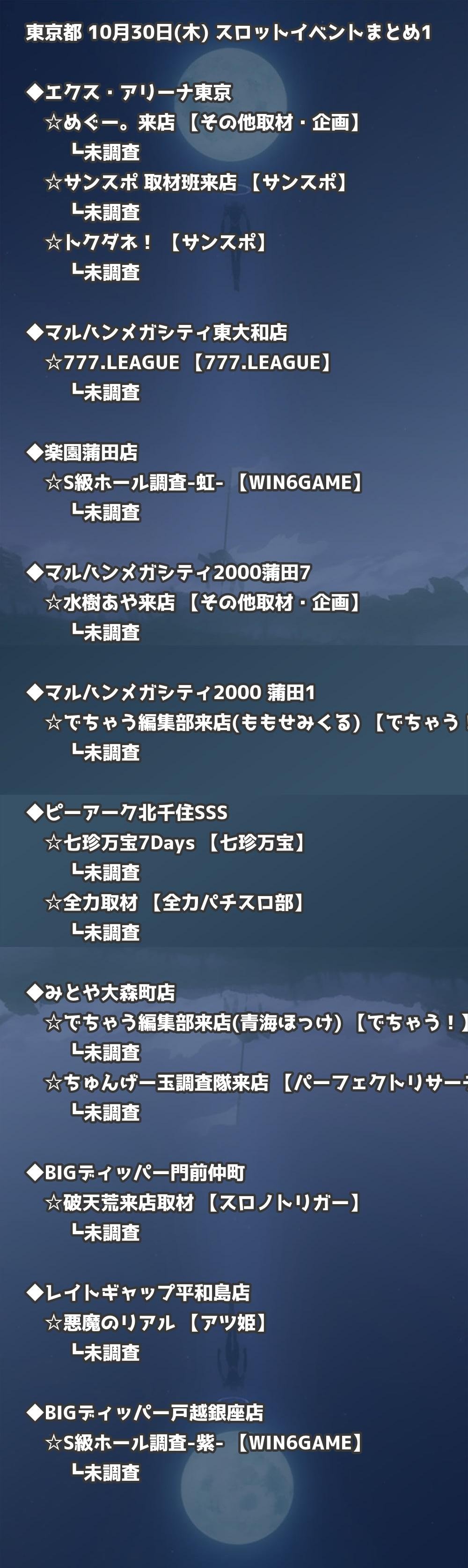 📊 東京都 10月30日(木) 勝てるパチンコ・スロット取材店舗一覧|おすすめ順
