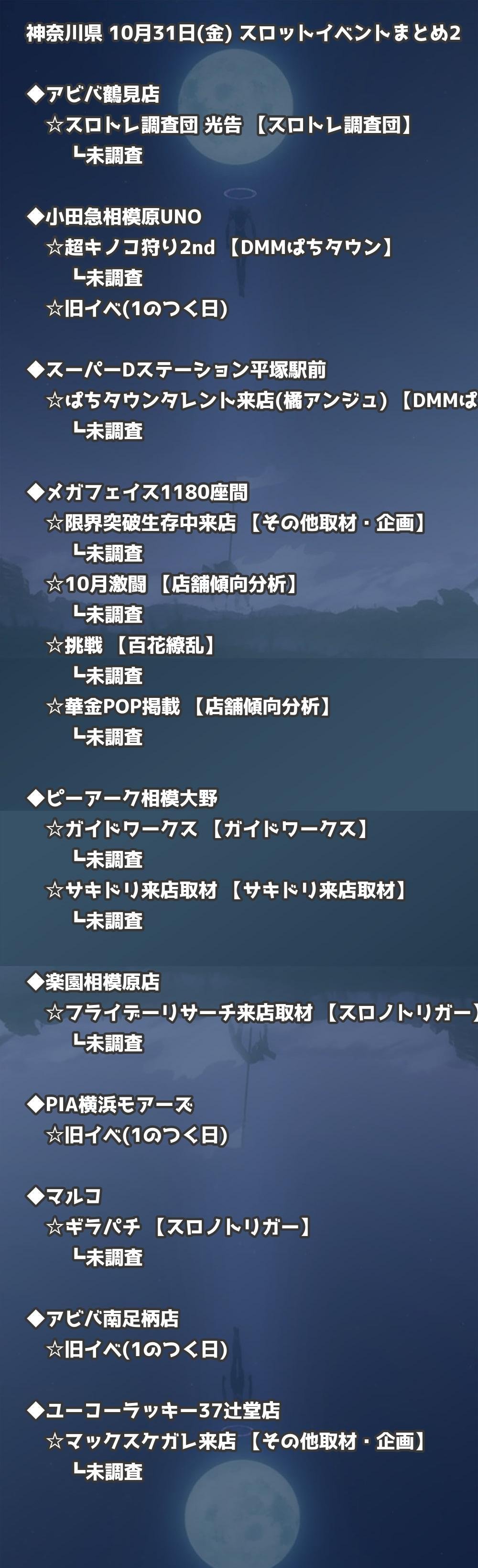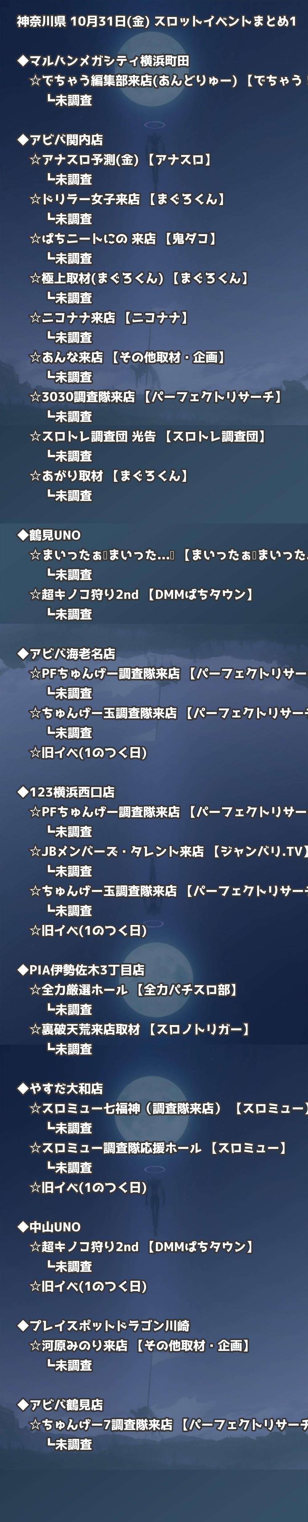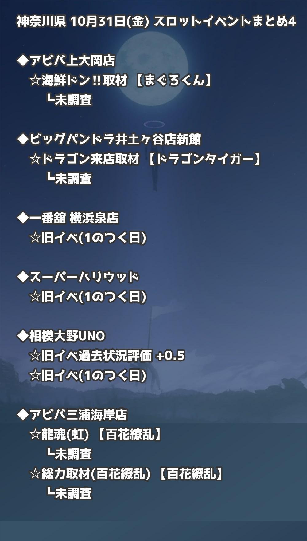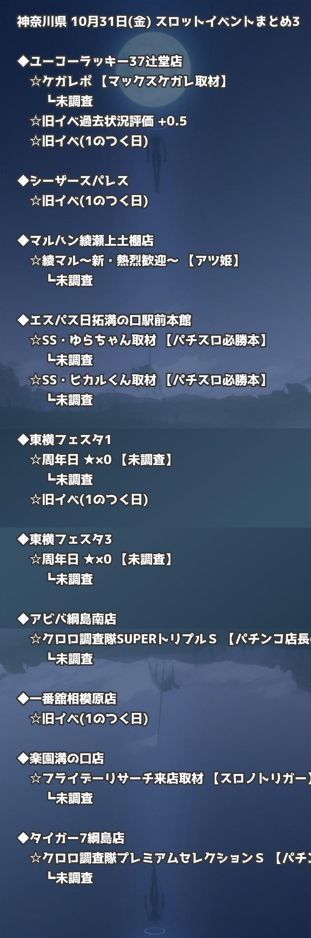 📊 神奈川県 10月31日(金) 勝てるパチンコ・スロット取材店舗一覧|おすすめ順