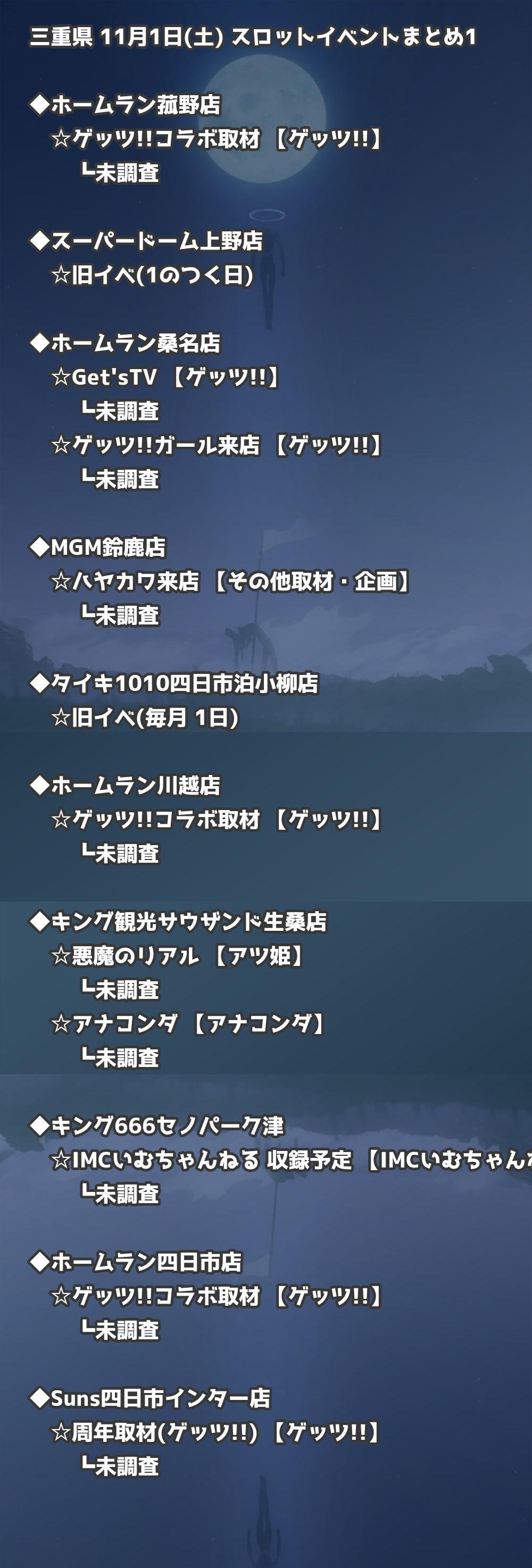 【三重県】11月1日(土) パチンコホールイベント取材まとめ記事です。
