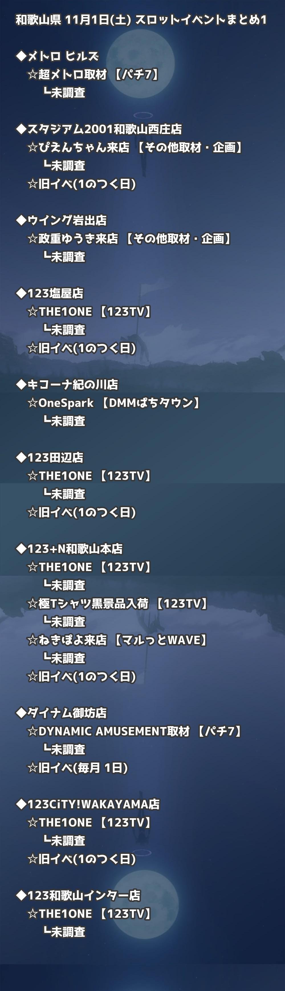 【和歌山県】11月1日(土) パチンコホールイベント取材まとめ記事です。