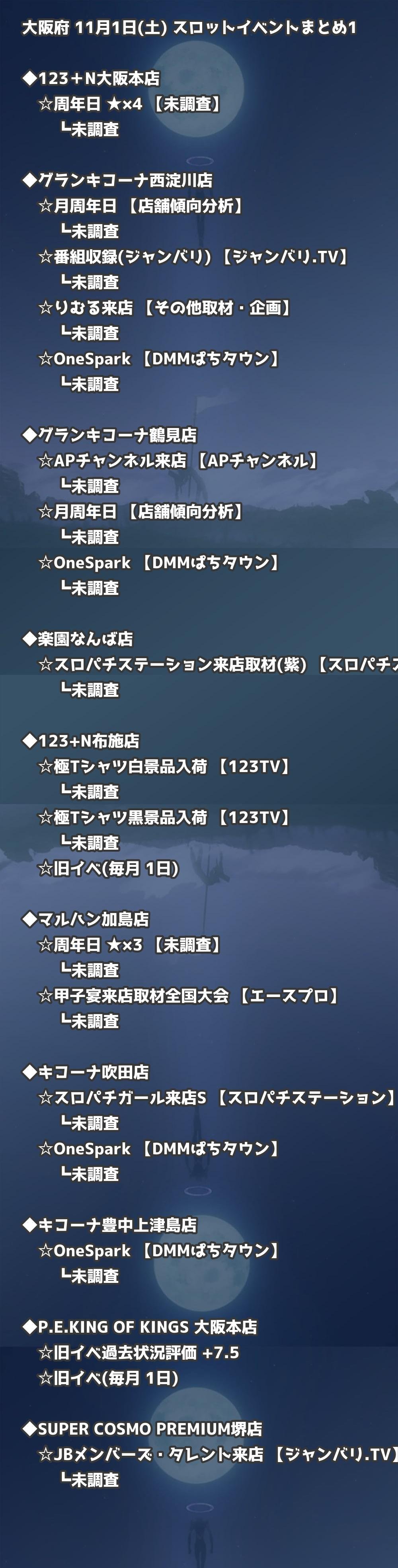 📊 大阪府 11月1日(土) 勝てるパチンコ・スロット取材店舗一覧|おすすめ順